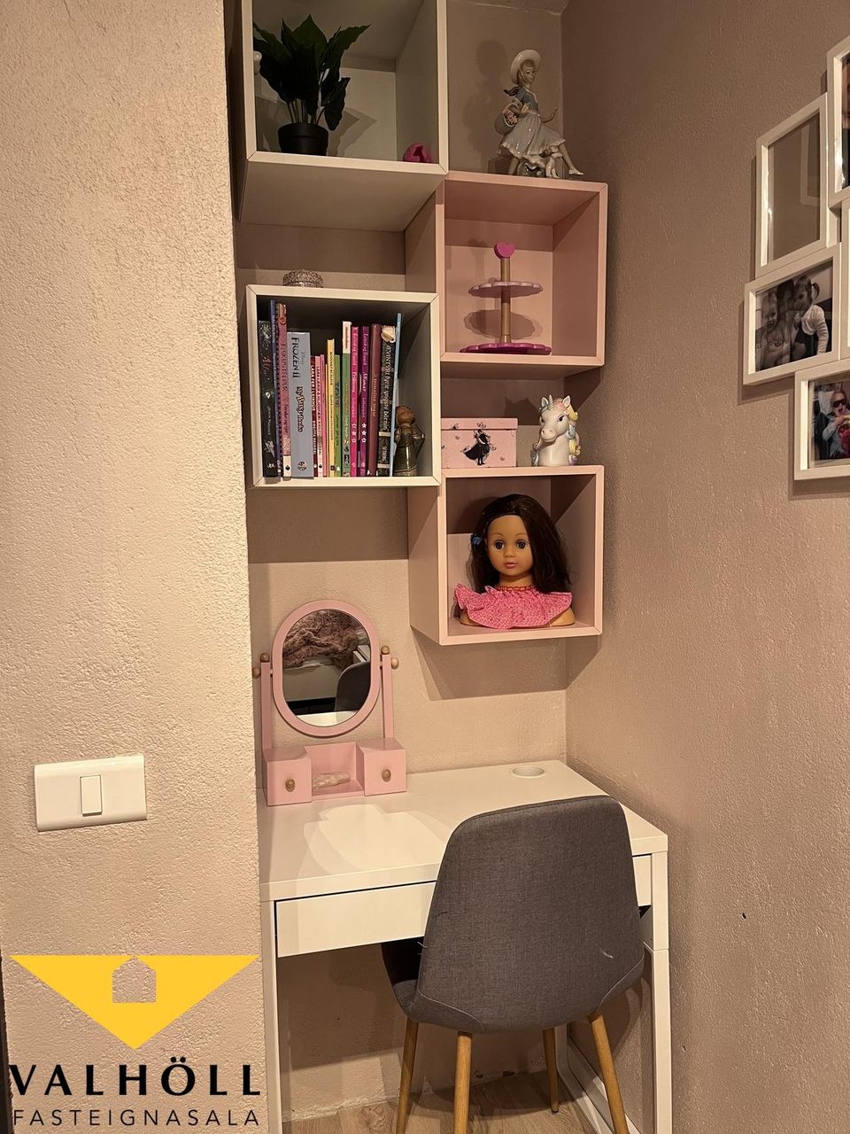 Þvottahús, lakkað gólf, hillur, tengi fyrir þvottavél og þurrkara. Útgengi út á bifreiðastæði.