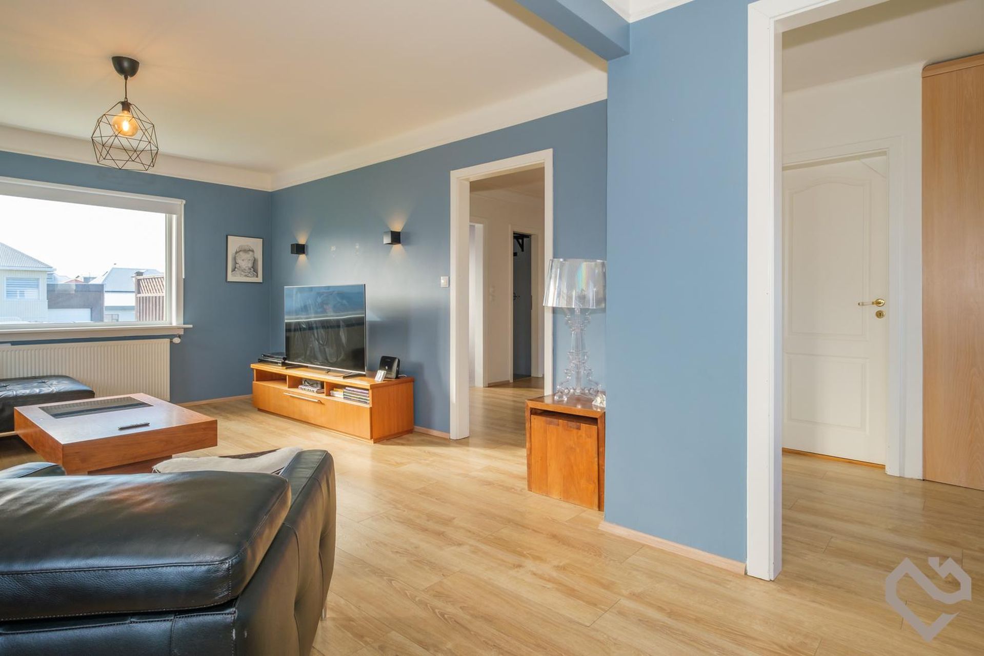 Stofa: parket á gólfi, opið í borðstofu