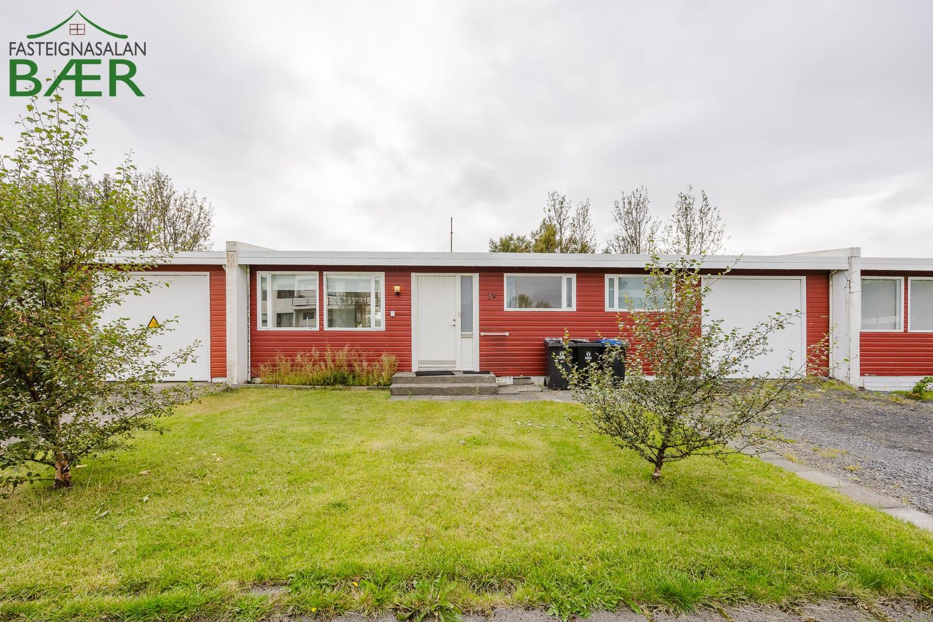 Fasteignasalan Bær og Páll Guðjónsson kynna: Rúmgott þriggja herbergja raðhús á einni hæð með innbyggðum bílskúr, alls 113 fm. Eignin er til afhendingar við kaupsamning. Komið er inn í litla flísalagða forstofu með fataskáp.