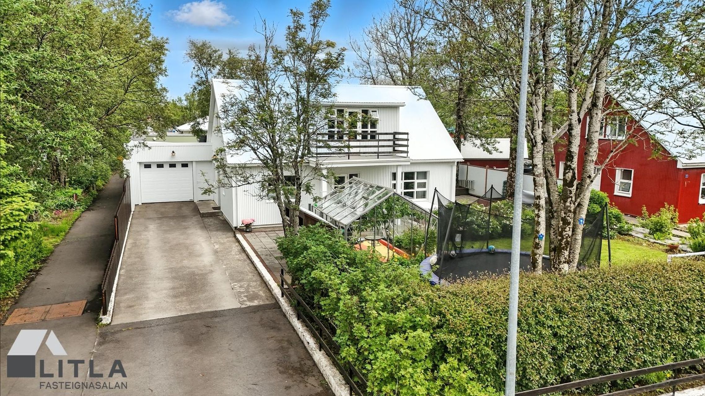 Góð steypt innkeyrsla er fyrir framan húsið