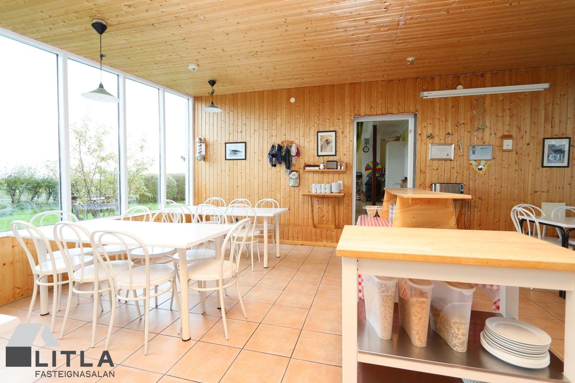 En eldhúsið eru einnig með iðnaðareldhústæki, stóran ofn, gas eldvél með 4 brennurum og stór steikarpanna