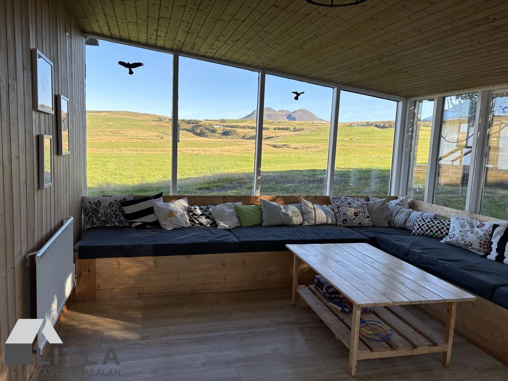 Lítil setustofa með stórum gluggum