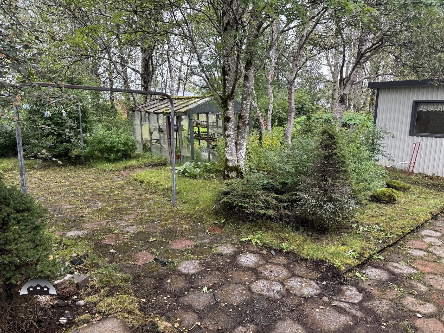 Lóðin er öll gróin og skjólgóð og er búið að gróðursetja mikið í hana, á baklóð er upphitaður geymsluskúr úr timbri.