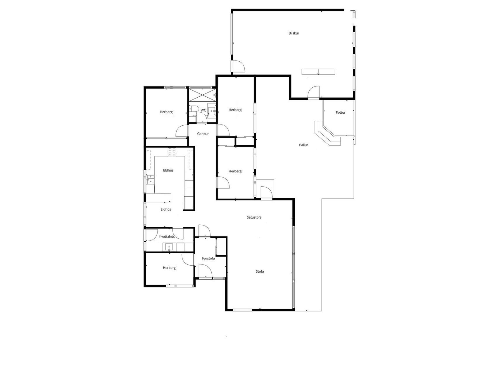 Bílskúr: Stór bílskúr með aukinni lofthæð. Eftir er að fullklára frágang að innan.