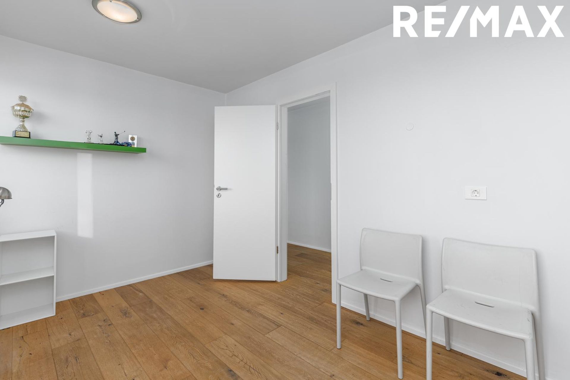 Svefnherbergi 3: Rúmgott svefnherbergi með parketi á gólfi og fataskáp.