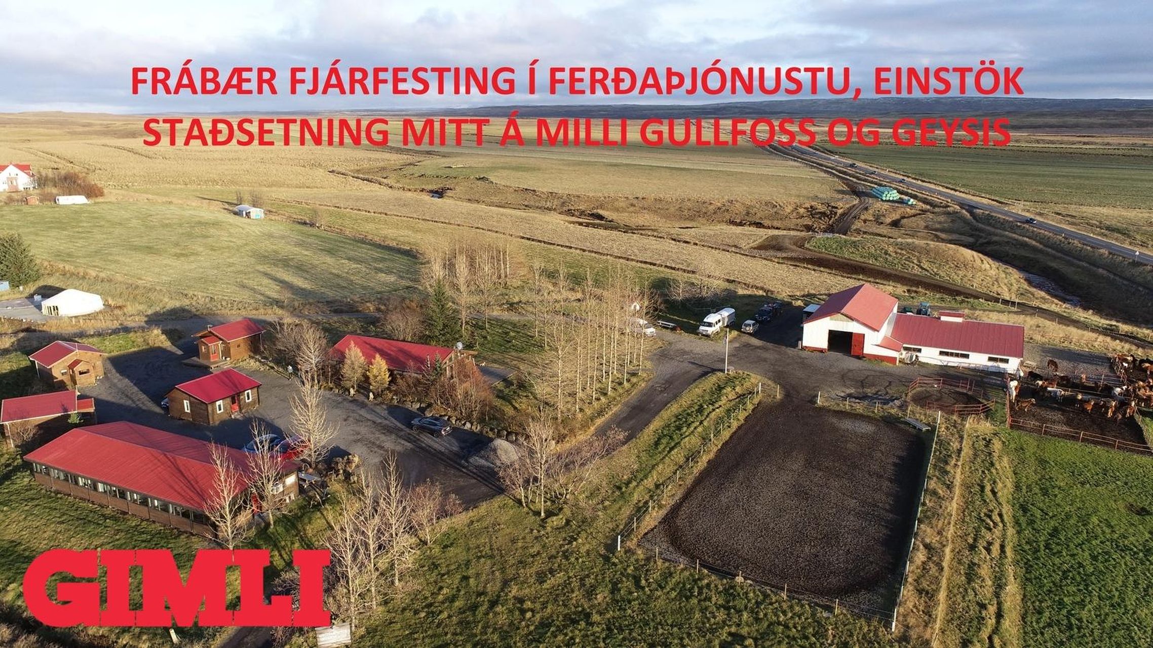 Mjög áhugavert tækifæri í ferðaþjónustu fyrir fjársterka aðila. Um er að ræða jörðina Kjóastaði 2 við Biskupstungnabraut í Haukadal. Þetta er einstök staðsetning á Gullna hringnum, mitt á milli Geysis í Haukadal og Gullfoss, um 5 mín. akstur í hvora átt. Einstakt útsýni með miklu víðsýni frá Bláfelli í austur til Jarlhetta og Langjökuls til norðurs og niður Haukadal til vesturs. Nánast hægt að fullyrða að þetta sé ein fallegasta staðsetning með tilliti til útsýnis á þessu svæði og þótt víðar væri leitað.
