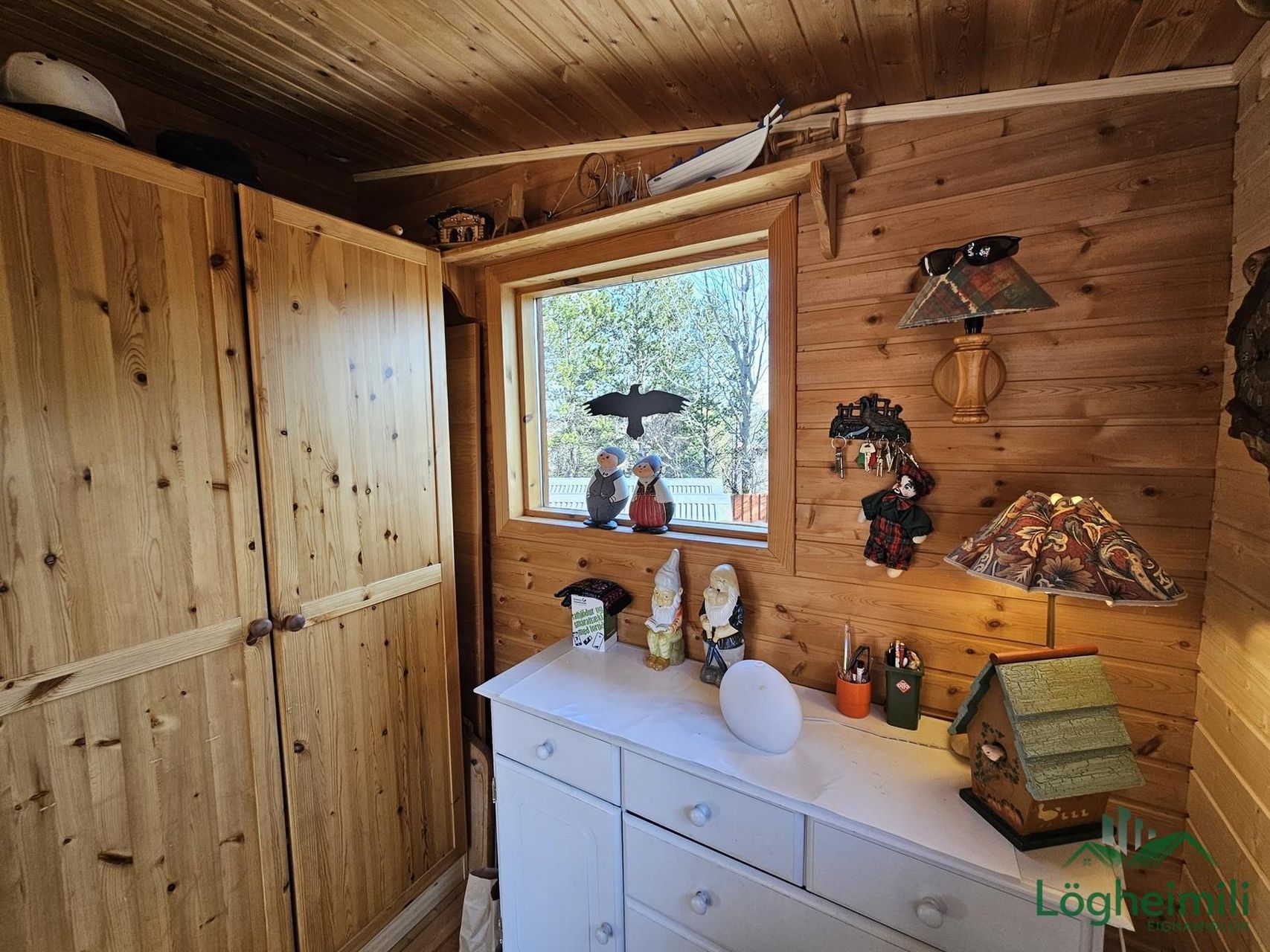 Svefnherbergi: Eitt svefnherbergi þar sem útgengt er út á suður og vesturhluta sólpalls.