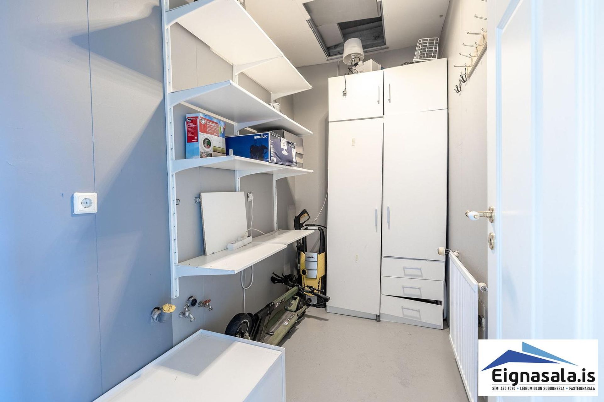 Þvottahús: Þvottahús er með uppgengi að geymslulofti sem er yfir hluta íbúðar.