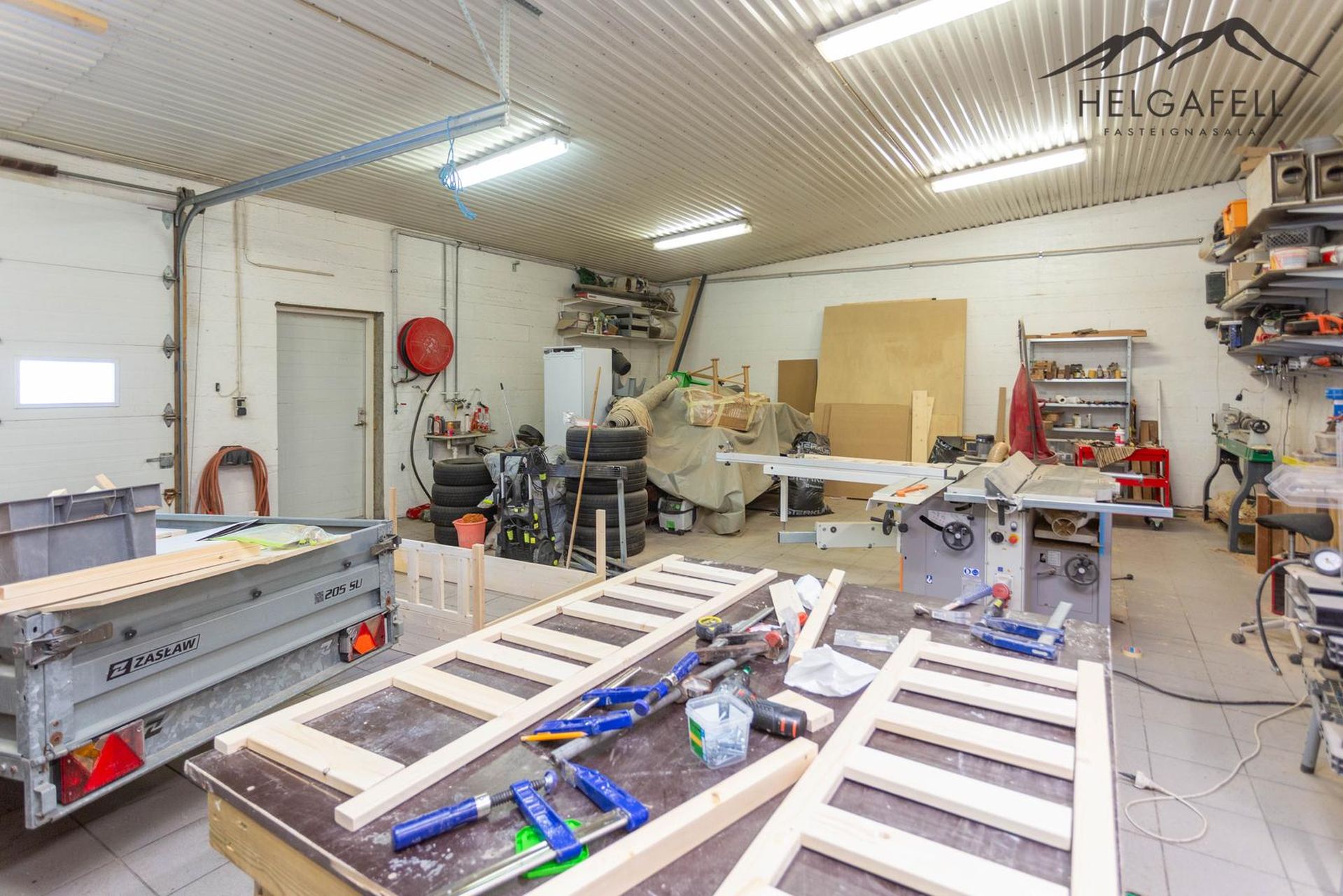 Um er að ræða rúmgott og snyrtilegt 90,5 fm. iðnaðarhúsnæði við Hafnarskeið í Þorlákshöfn. Húsið er einstaklega vel staðsett á hafnarsvæðinu. Húsnæðið er endabil sem staðsett er í austurenda hússins og er aðkeyrsla götumegin við húsið, sjávarmegin. Eignin er eitt alrými með innkeyrsluhurð (hæð ca. 2.95 m, breidd 2.70 m) og gönguhurð. Planið framan við eignina er steypt/malbikað. Eigninni fylgir hlutdeild í sameign (kaffistofa og salerni) sem staðsett er í vesturenda hússins.