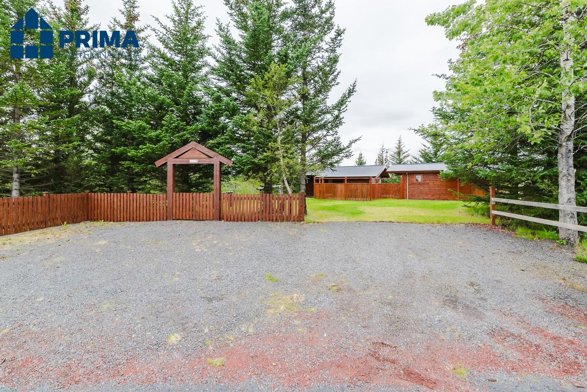 Stór og skógi vaxinn garður umlykur sumarhúsið.