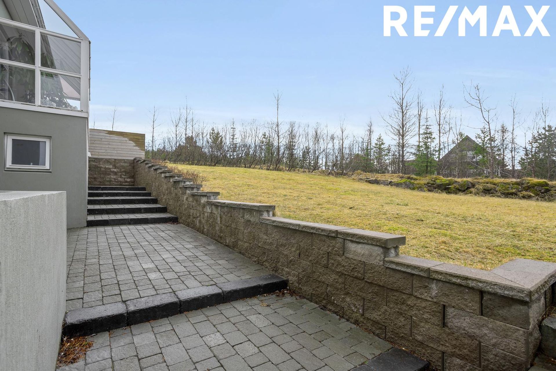 Lóðin er fullfrágengin og mjög falleg. Á framlóð eru stór hellulögð innkeyrsla og stétt meðfram íbúð á neðrihæð. Á bakhluta hússins er stór og skjólsæl viðarverönd með skjólveggjum og heitum potti og liggur sá hluti lóðarinnar að opnu óbyggðu svæði.