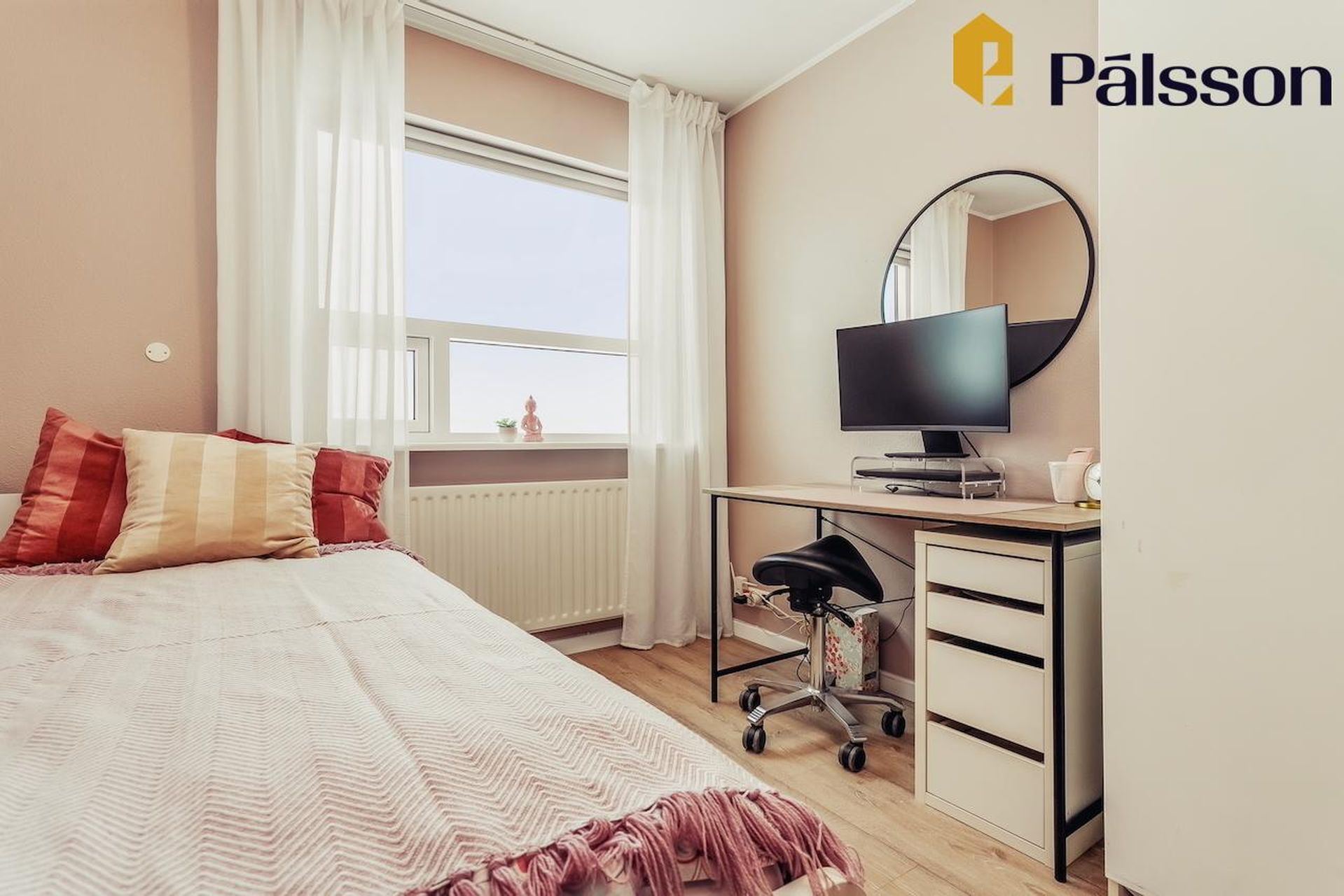 Svefnherbergi I er rúmgott með góðum fataskápum. Parket á gólfi.