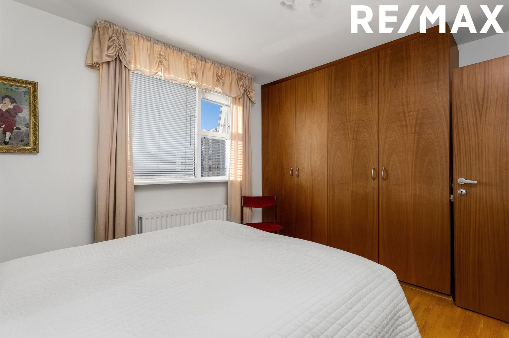 Parket á gólfi og góður fataskápur. Herbergið er bjart með góðum glugga.