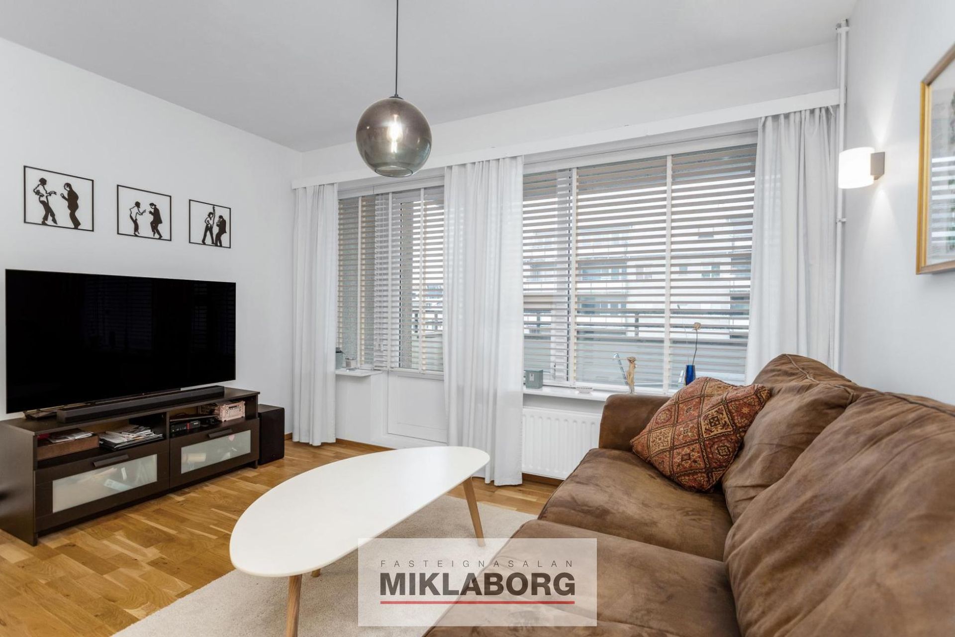 Miklaborg kynnir: 2ja herbergja íbúð á 4. hæð í lyftuhúsi við Skúlagötu 46. Stæði í bílageymslu fylgir eigninni. Sérgeymsla í kjallara. Eignin skiptist í anddyri, stofu og eldhús, baðherbergi og svefnherbergi með skápum. Vestursvalir eru út úr stofu.