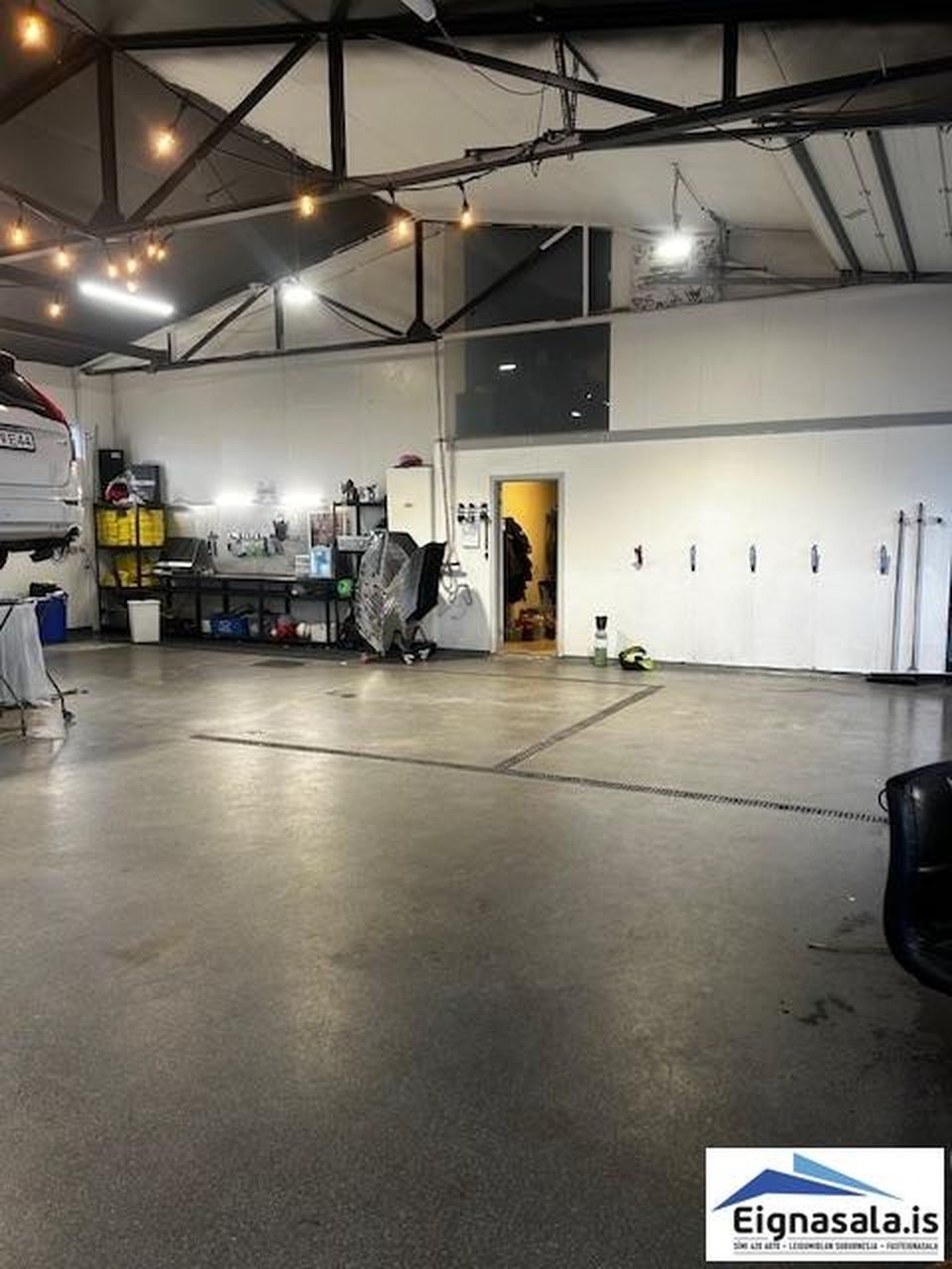 Húsið var allt tekið í gegn að innan árið 2022 gólfið var flotað ræsi endurnýjuð epoxy quarz sett á salargólfið, allt rafmagn yfirfarið ný innaksturshurð og margt fleirra. Lóðinn var stækkuð haustið 2024 Nánari upplýsingar á skrifstofu Hafnargötu 90a í síma 420-6070 eða julli@eignasala.is