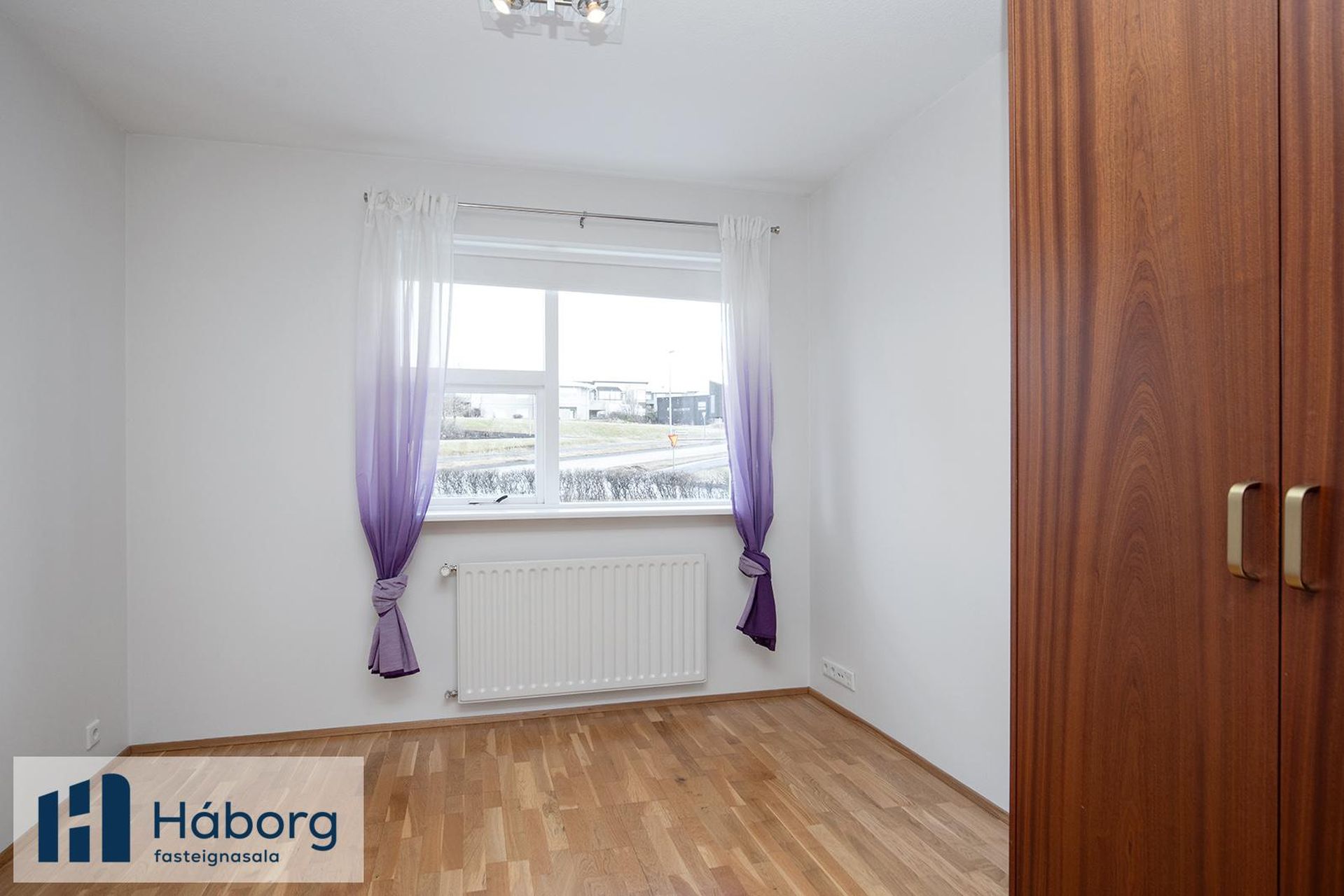 Íbúðin er vel staðsett í hverfinu, með fallegt útsýni og í göngufjarlægð við skóla, leikskóla, sundlaug og íþróttahús.