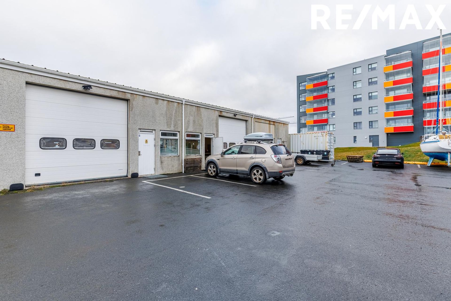 Aðkoma að húsinu er góð, malbikuð sameiginileg lóð, gámastæði.