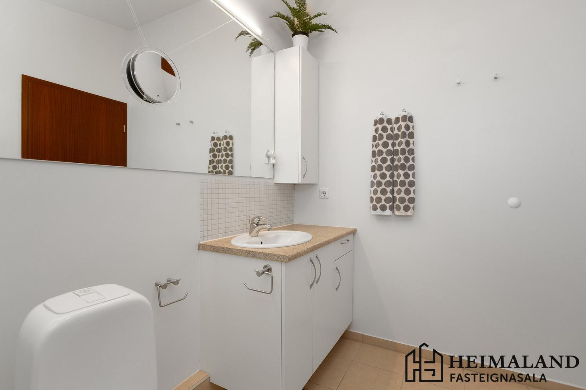 Rúmgott þvottahús/geymsla er innan íbúðar. Flísar á gólfi.