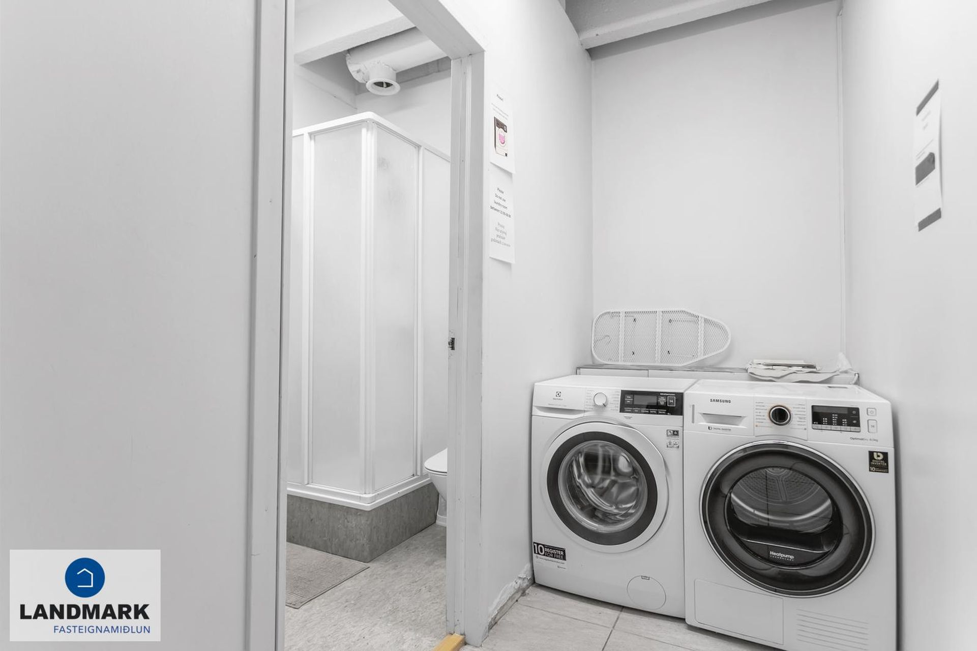 Þvottavélar, þurrkarar í ræstiherbergjum og ísskápur í eldhúsi getur fylgt með í kaupum.