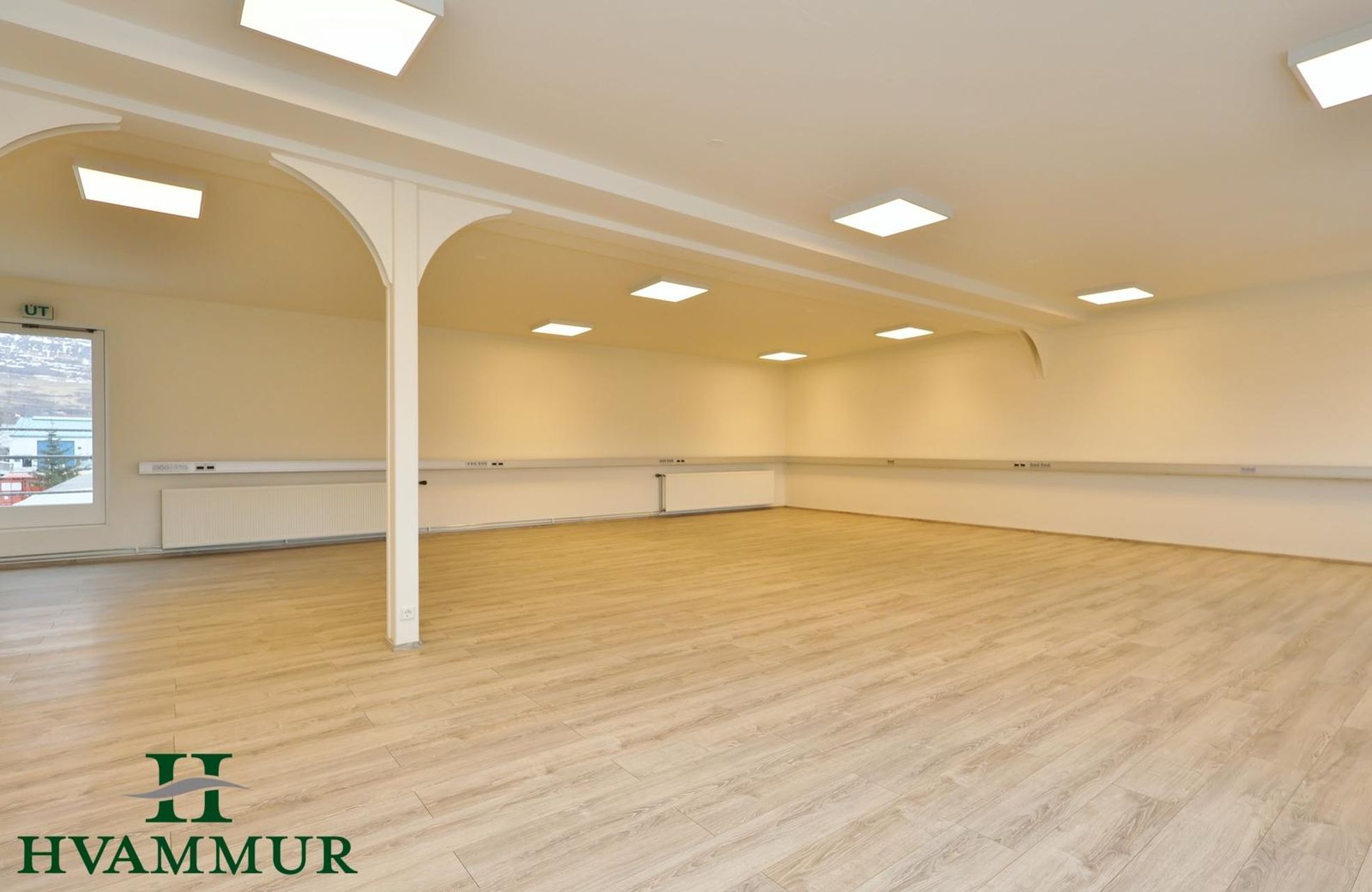 - Rúmgóður salur sem gæti nýst sem til dæmis skrifstofur eða veislusalur.
