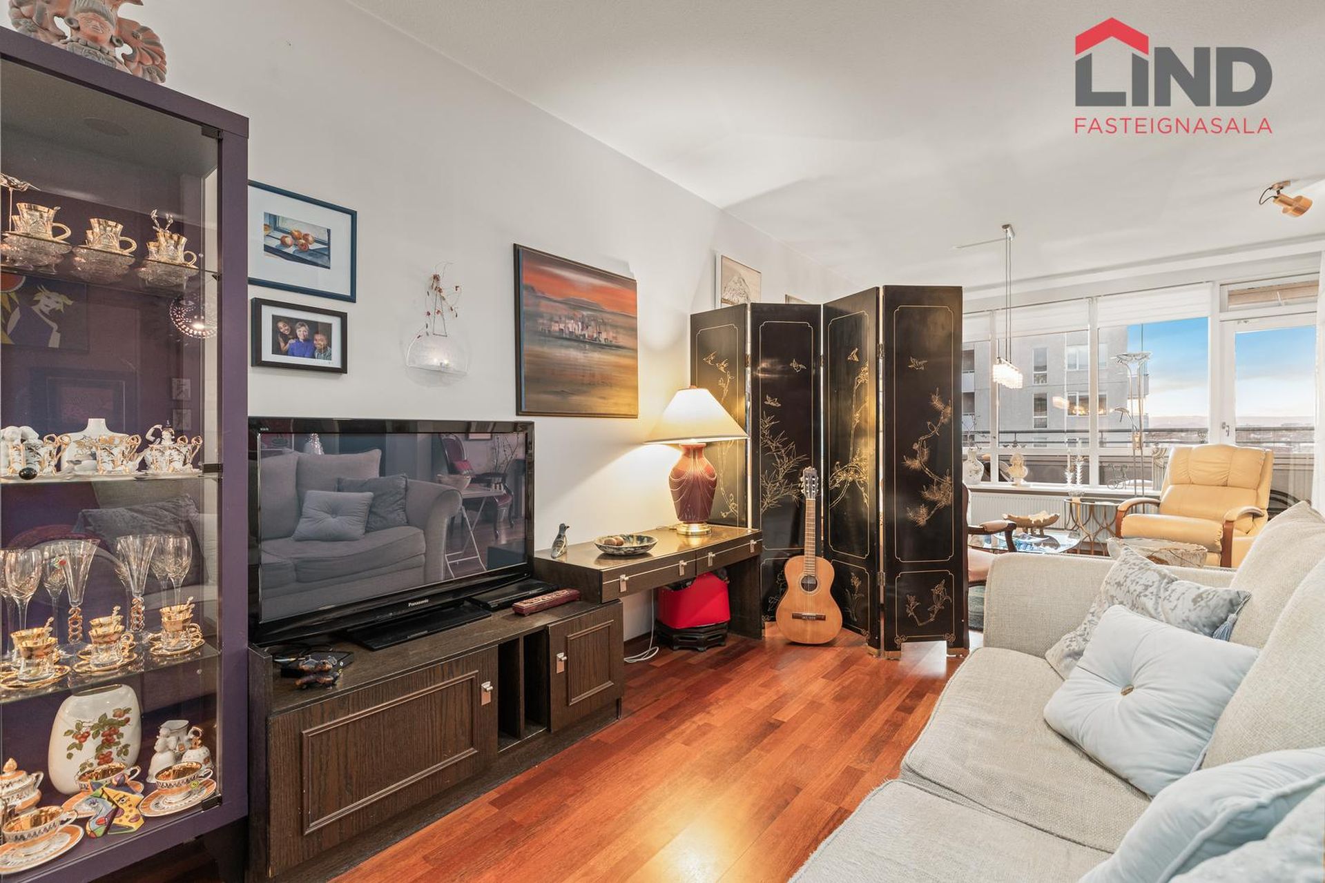 Lind fasteignasala / Heimir Hallgrímsson lögg. fasteignasali kynna til sölu afar fallega 99,1 fermetra 3ja herbergja íbúð með stórum svölum til suðurs í góðu fjölbýli með lyftu við Sóleyjarima 11 í Reykjavík. Íbúðin er með rúmgóðu alrými (stofa og eldhús) með útgengi á stórar svalir með svalalokun. Tvö svefnherbergi, gott baðherbergi og þvottaherbergi innan íbúðar. Sér bílastæði í bílakjallara, sérgeymsla í kjallara sem er 9,7 fermetrar og sameiginleg hjóla- og vagnageymsla.