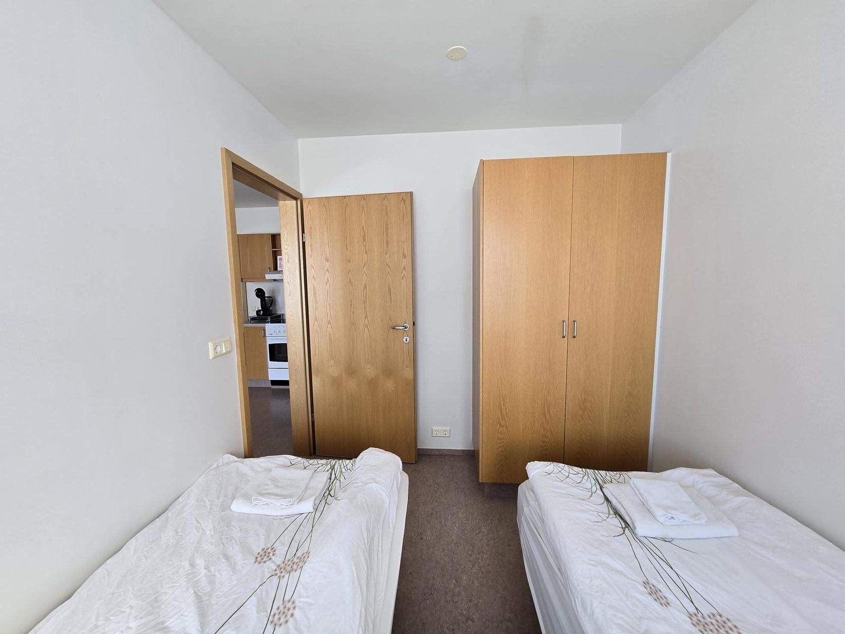 Svefnherbergi er dúklagt og með fataskáp.