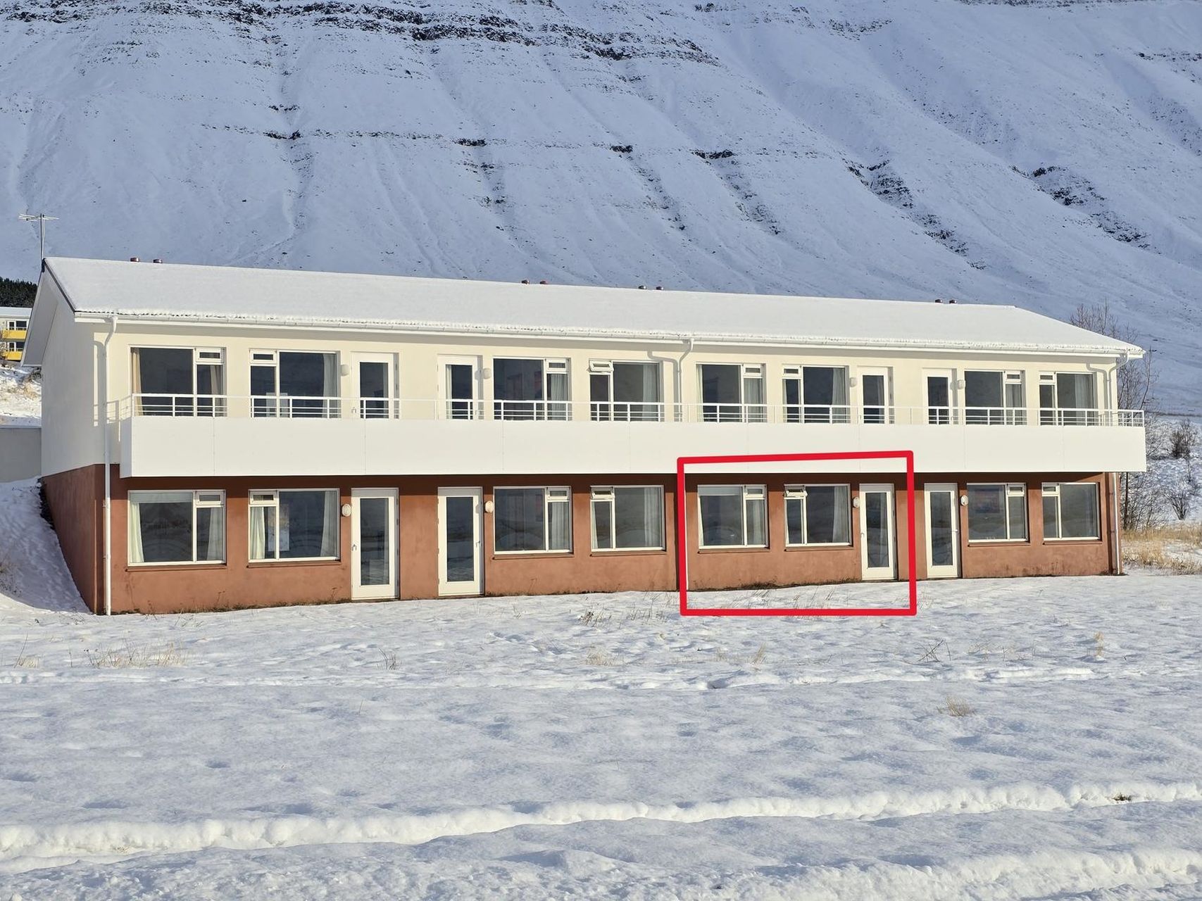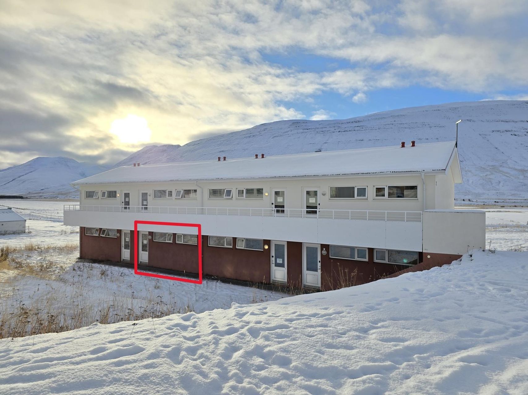 Sérinngangur til íbúðarinnar er á austurhlið hússins.