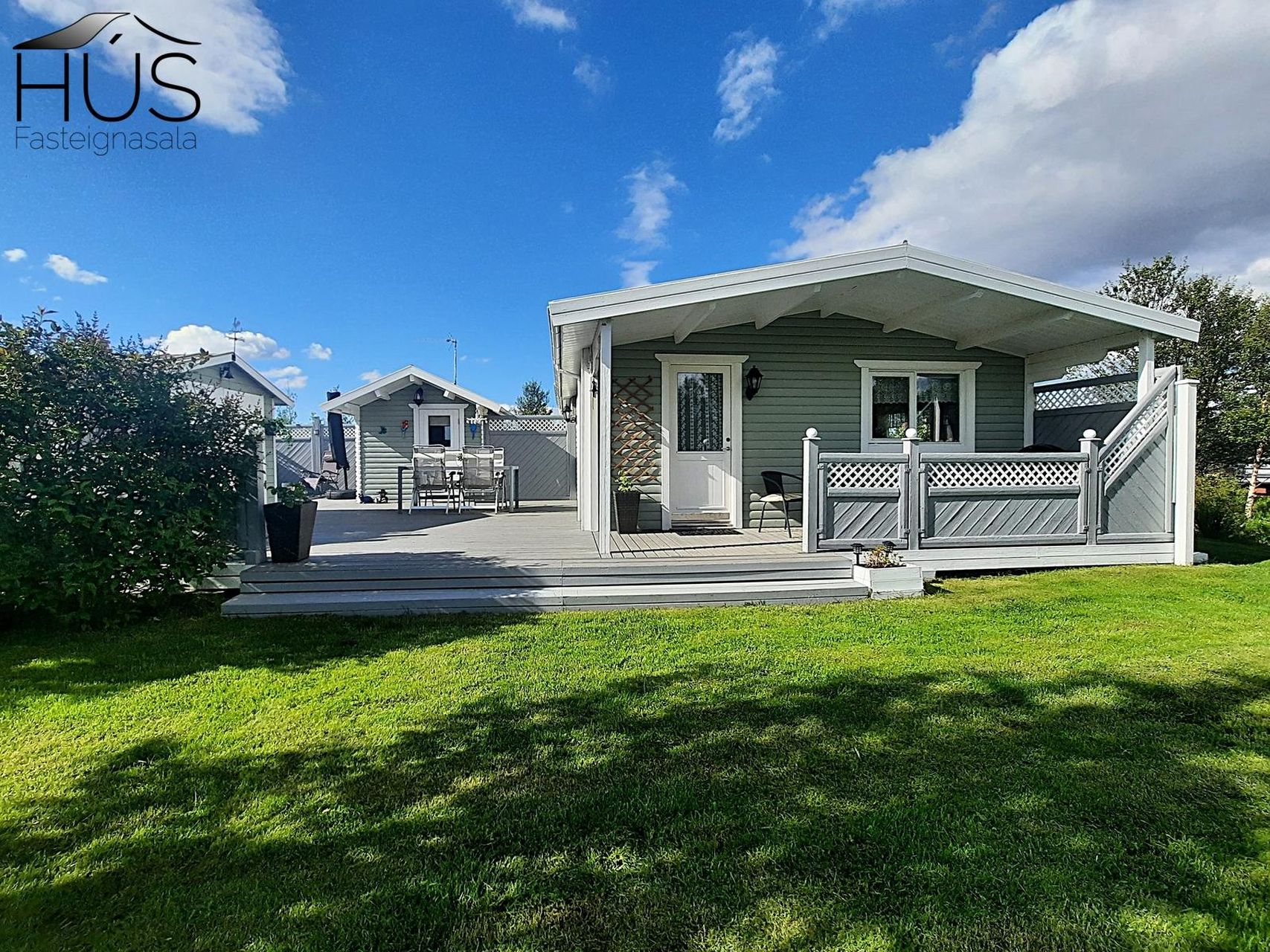 Úti á stórum palli er ca. 10fm gestahús með tveimur rúmum og heldur minni verkfæraskúr. Skjólsælt horn á pallinum á milli þeirra með háum skjólveggjum og garðhúsgögnum.