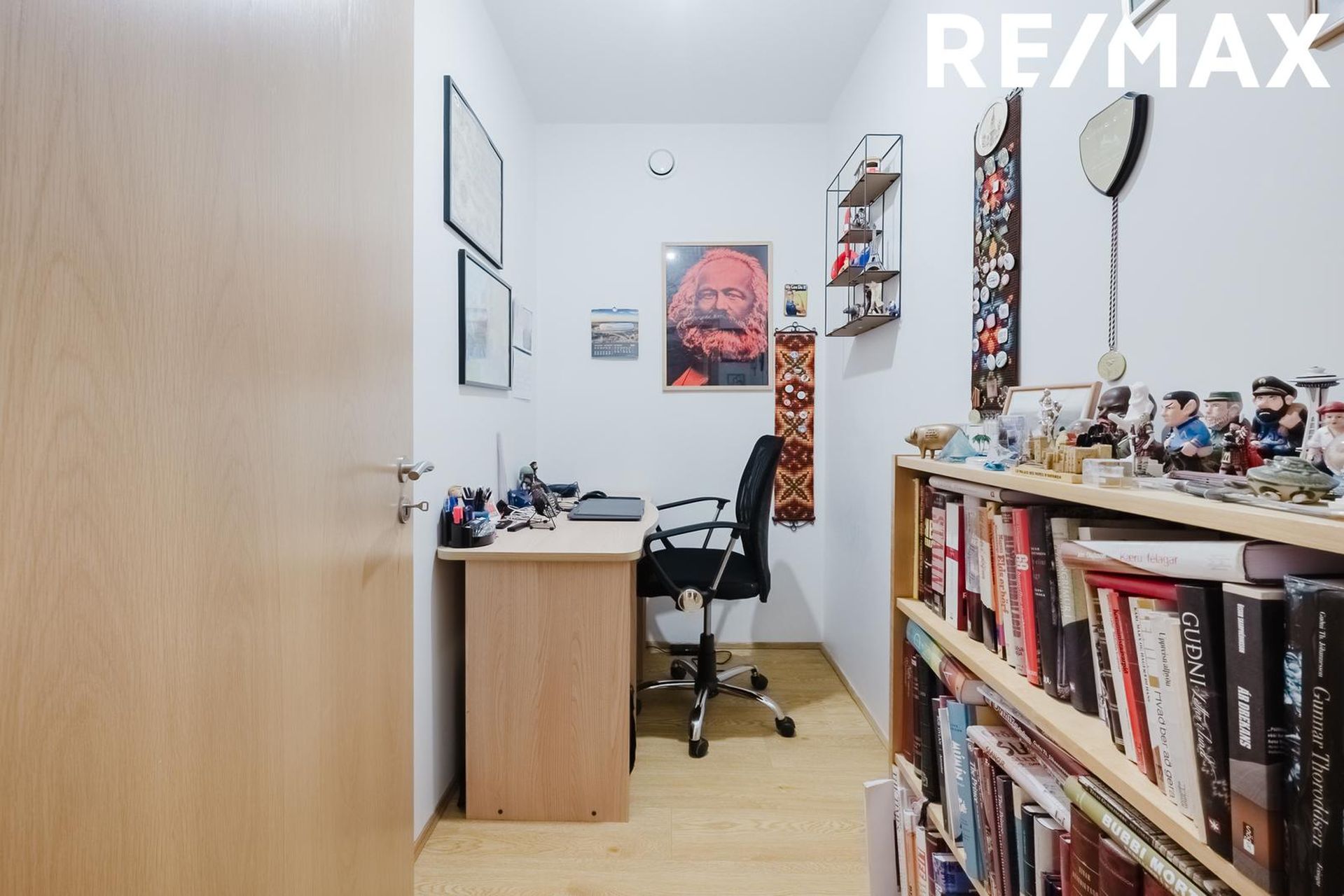 Tvö svefnherbergi eru tvö rúmgóð með góðum fataskápum. Til viðbótar er geymsla innan íbúðar sem nýtt er sem skrifstofa í dag.