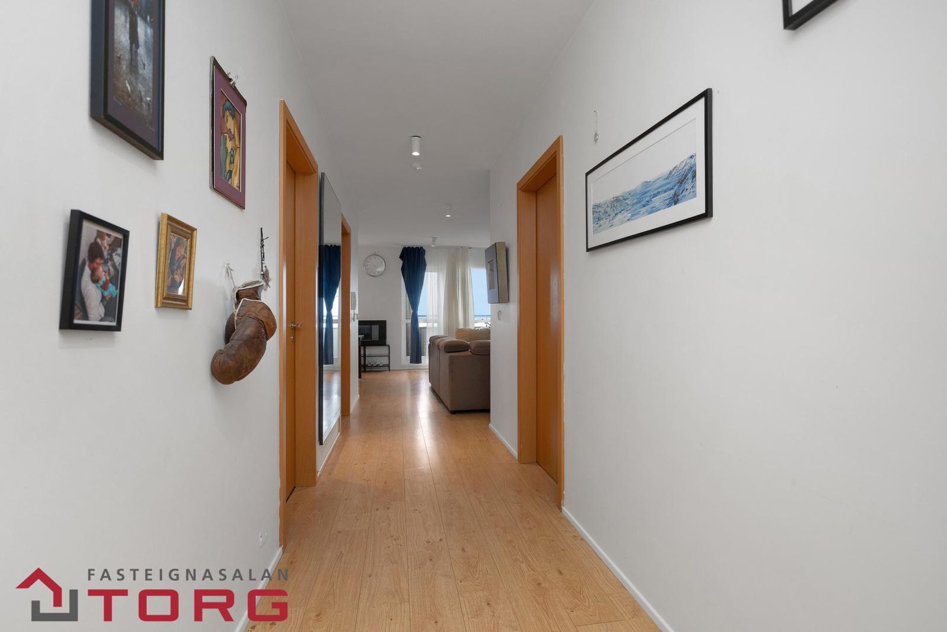 Eignin skiptist í eldhús, borðstofu og stofu í opnu rými, þrjú rúmgóð svefnherbergi, baðherbergi og sér þvottahús innan íbúðarinnar.