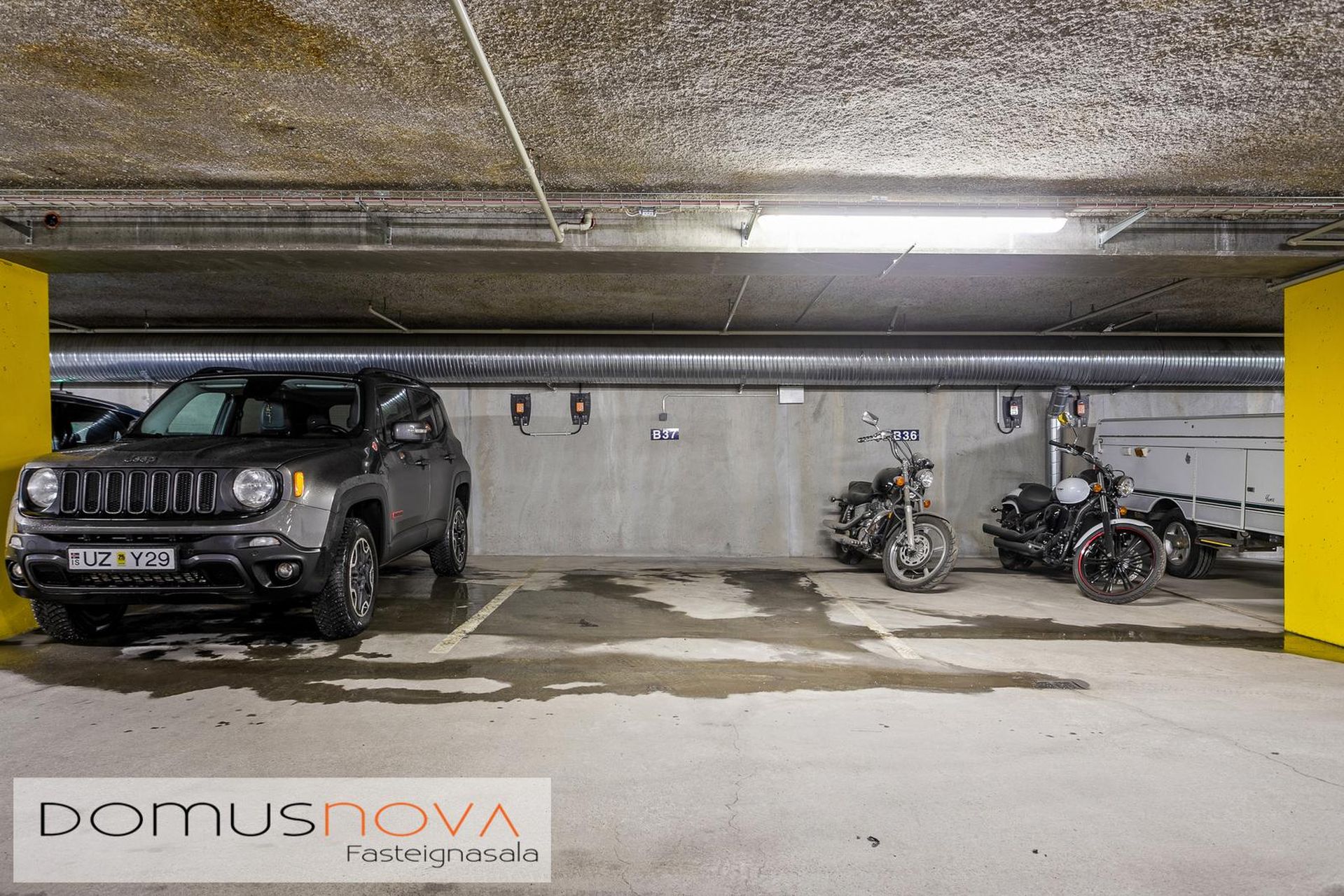 Bílastæði í bílakjallara fylgir íbúðinni og fer lyfta úr bílakjallara beint fyrir framan íbúð, einungis tvær íbúðir eru á hæðinni. Sameiginleg þvottaaðstaða er í bílakjallara. komið er tengi fyri rafhleðslustöð frá ON við bílastæðið.