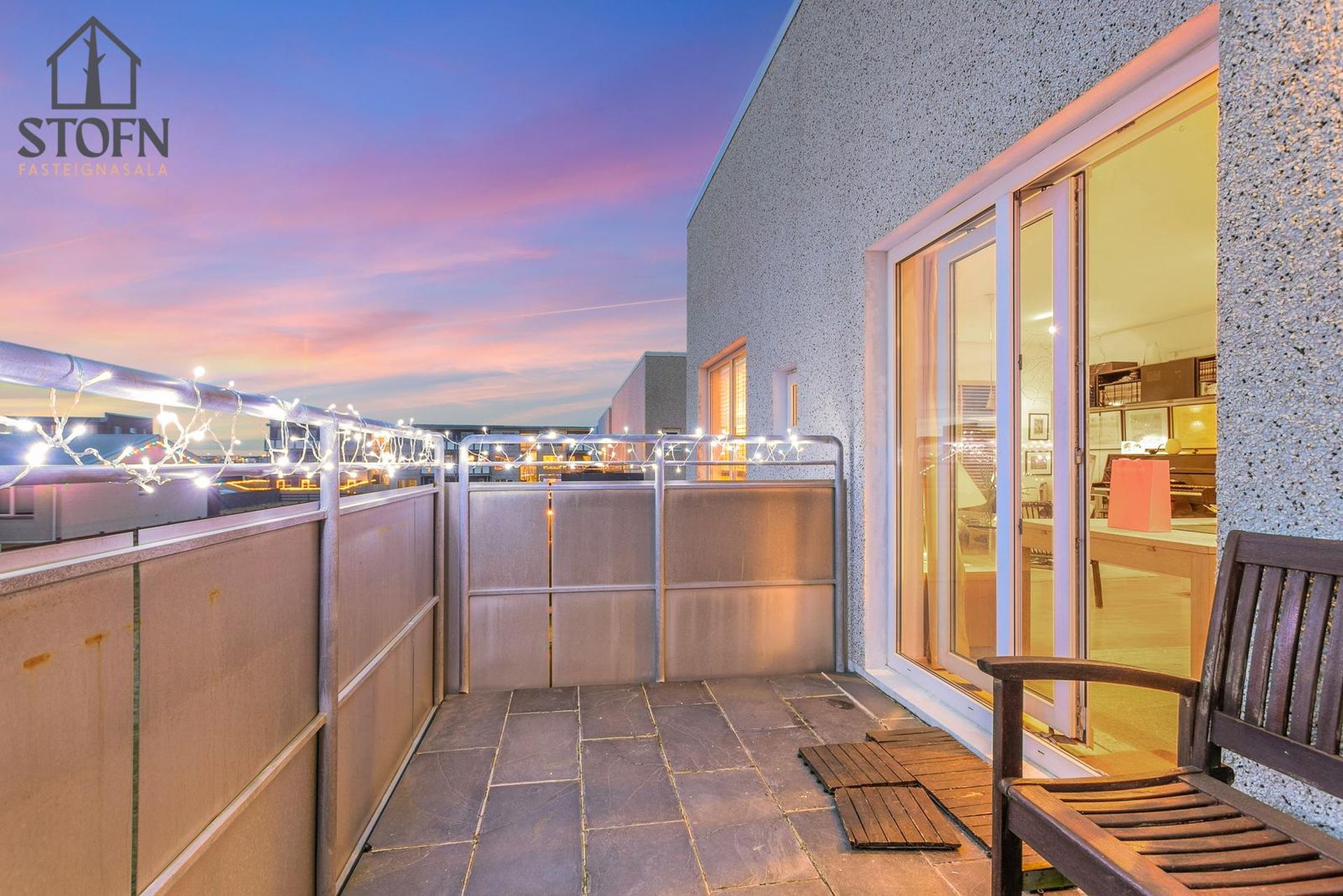 STOFN FASTEIGNASALA KYNNIR: Bjarta og opna 91,4 fm þriggja herbergja endaíbúð með glugga í þrjár áttir á efri hæð með sérinngangi og rúmgóðum svölum. Húsið hefur fengið ágætis viðhald á undanförnum árum. Stutt er í alla helstu þjónustu eins og leik- og grunnskóla ásamt verslun.
