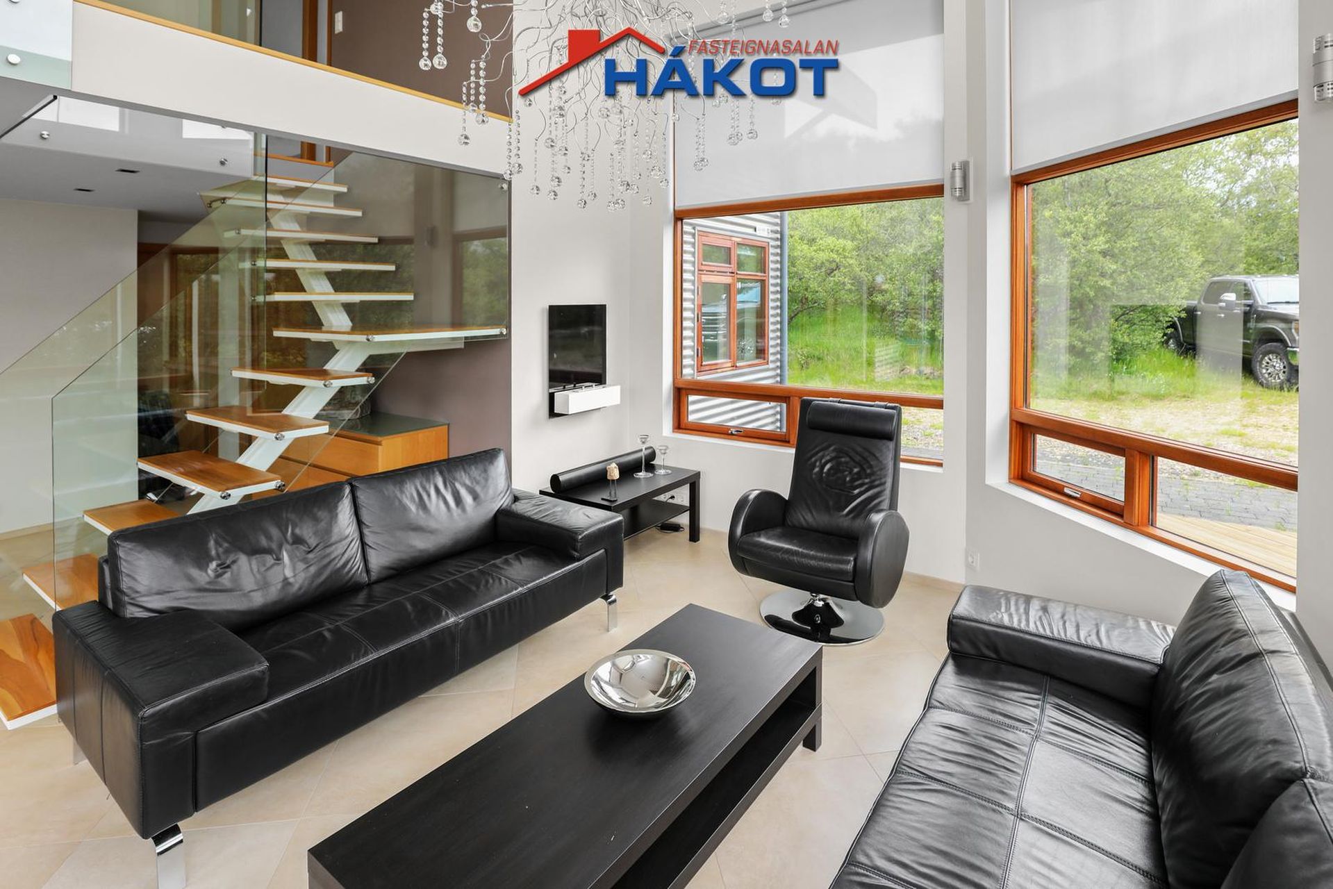 ANNAÐ: Heitur og kaldur pottur á stórri verönd. Hellulagt meðfram húsi að hluta (hiti). Nýleg stýring á gólfhita. Kommóður í herbergjum. Gólfhiti. Slétt tún við verönd, mill gróður í kringum lóðina. Allt innbú nema persónmulegir hlutir fylgja með.Heilsárs sumarhús í fallegu rjóðri í Húsafellsskógi til sölu