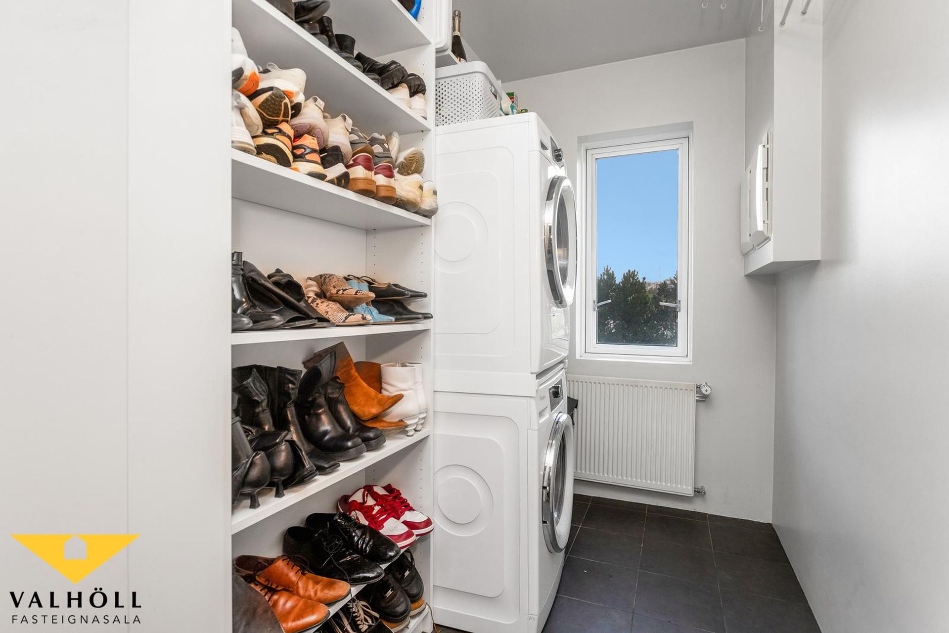 Þvottahús: er við hlið forstofu með opnanlegum glugga og flísum á gólfi.