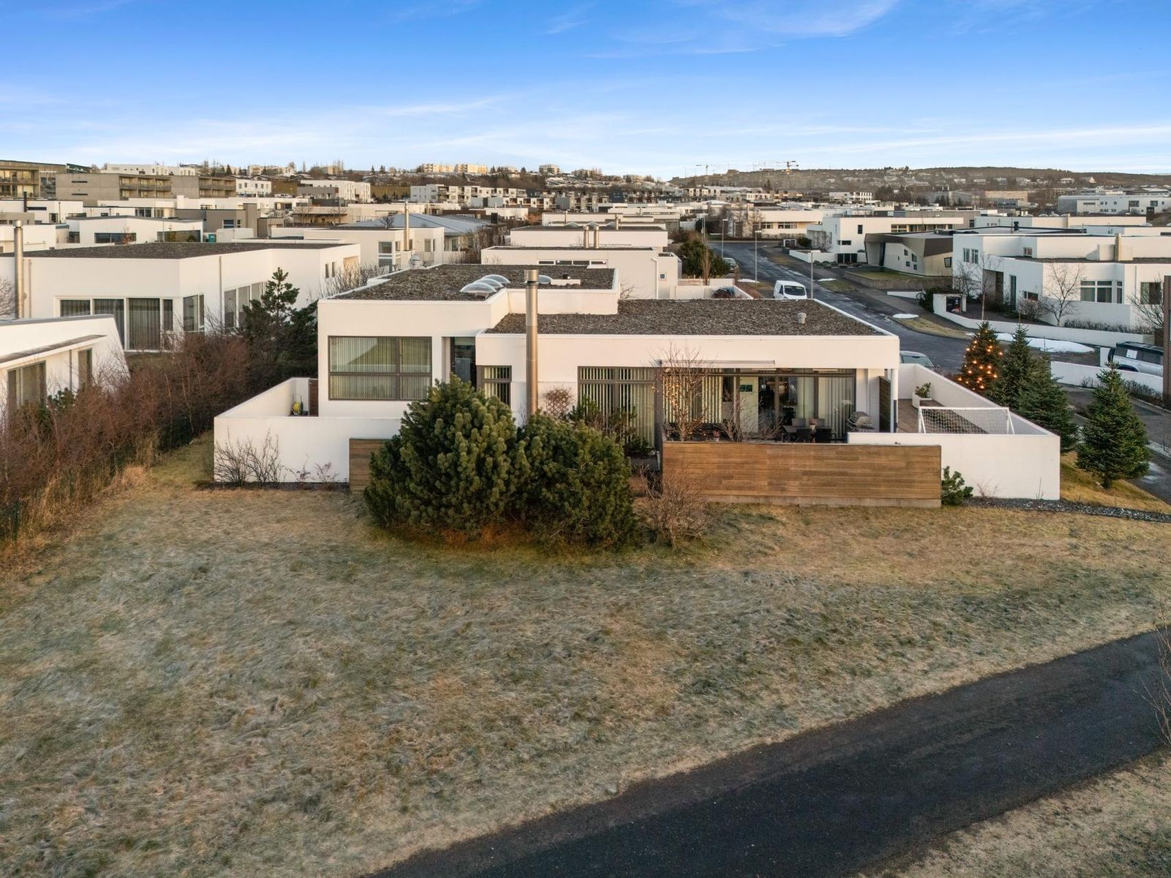 Ásmundur Skeggjason kynnir frábærlega staðsett einbýlishús innst í botnlanga við opinn grænan trefil í Akrahverfinu. Húsið er mjög glæsilegt og með aukinni lofthæð. Eignin skiptist m.a. í fjögur svefnherbergi, þrjár stofur, þrjú baðherbergi, eldhús, tómstundarherbergi og bílageymslu. Arinn er í stofu. Fullfrágenginn fallegur skjólsæll garður með sólpalli og heitum potti. Sigurður Hallgrímsson hannaði húsið og Guðbjörg Magnúsdóttir sá um innanhúshönnun og er útkoman í samræmi við það, sturlað hús og allur frágangur er í hæsta gæðaflokki.