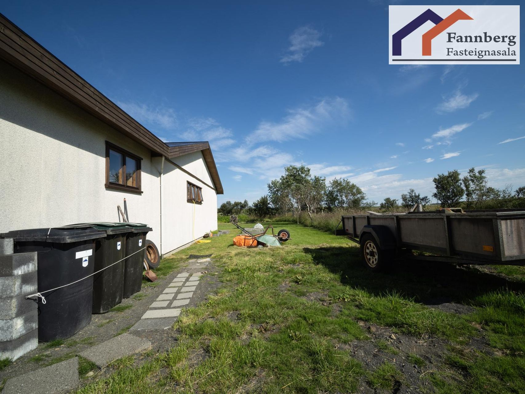 Húsið er byggt úr timbri árið 2006 og er klætt að utan með steniklæðningu. Stærð íbúðar er 99,3 fm og stærð geymslu og bílskúrs er 30,2 fm. Eignin telur: Anddyri með flísum á gólfi. Hol með parketi á gólfi. Stofu með parketi á gólfi og hurð út í garðinn. Eldhús með flísum á gólfi og góðri innréttingu, með eldavél, ofni og uppþvottavél. Þrjú svefnherbergi með parketi á gólfum, skápar eru í tveimur þeirra og í hjónaherbergi er hurð út í garðinn. Baðherbergi með flísum á veggjum og gólfi, baðkeri, sturtuklefa og innréttingu. Þvottahús með ómáluðu steingólfi. Úr forstofunni er innangengt í bílskúrinn, sem er með gönguhurð og innkeyrsludyrum. Í enda hans er geymsluherbergi. Við húsið er timburverönd og hellulagt bifreiðastæði. Garðurinn er gróinn.