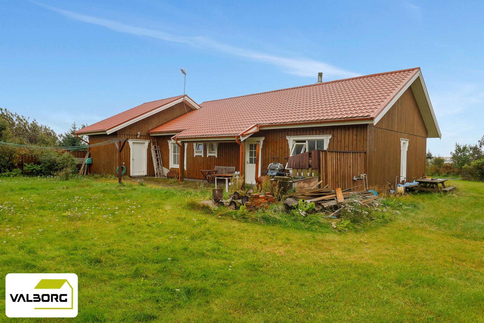 Fjögurra herbergja einbýlishús ásamt bílskúr, staðsett sunnnarlega í Flóanum.
