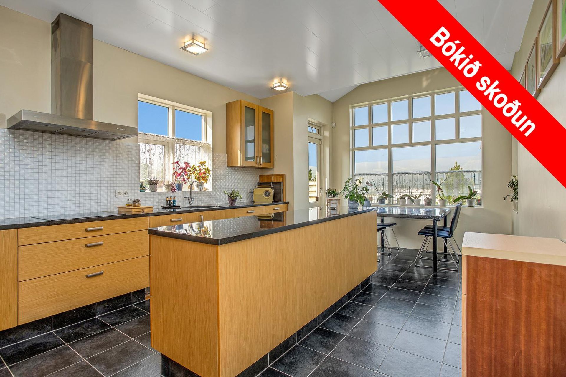 Mikið útsýni er úr eldhúsi og herbergjum til norðurs og vestur.