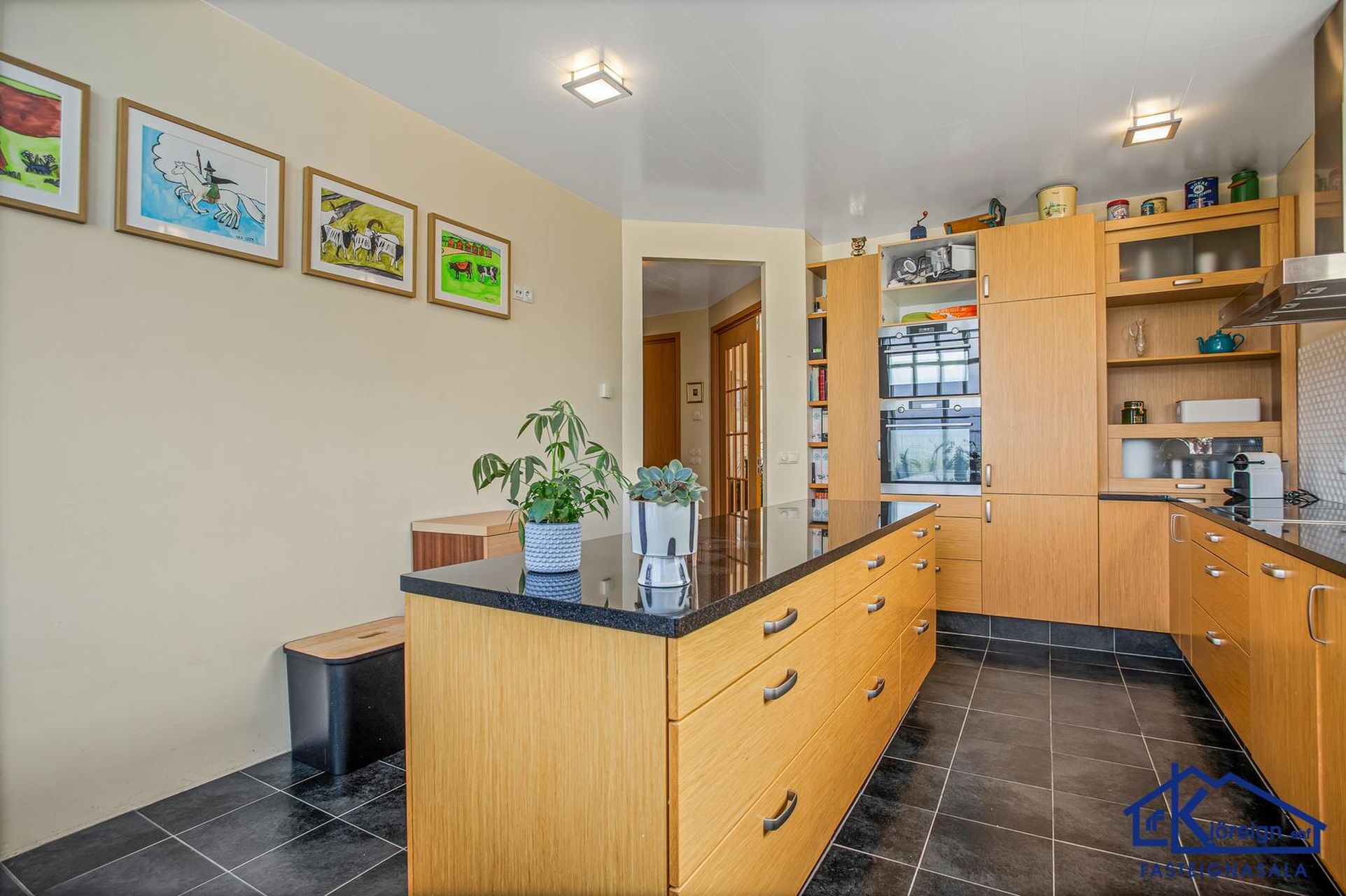 Nánari lýsing. Rúmgóð fostofa með gólfflísum. Rúmgott forstofuherbergi. Mjög rúmgott hol og sjónvarpsstofa í miðrými hússins. Tvöföld hurð með gleri inn í stofuna. Stofan er með dyr út á hellulagða stétt í garðinum. Sérlega rúmgott eldhús með stórri ljósri viðarinnréttingu úr eik og eyju. Steinn í borðplötum. Eldshúsgólf er flísalagt. Dyr eru úr eldhúsinu út á sólpall. Gestasnyrting inn af holinu án tækja. Tvö samliggjandi barnaherbergi, annað með skáp. Hjónaherbergi með fataherbergi innaf. Baðherbergi með gluggum. Baðker og sturtuklefi í baðherberginu sem er allt flísalagt, innrétting. Gengið er úr íbúðinni inn í góða geymslu og þvottahús. Þvottahúsið er með innréttingu og útihurð. Harðparket er á stofu, sjónvarpsstofu og herbergjunum. Auðvelt er að breyta herbergjaskipan og sameina stofur.