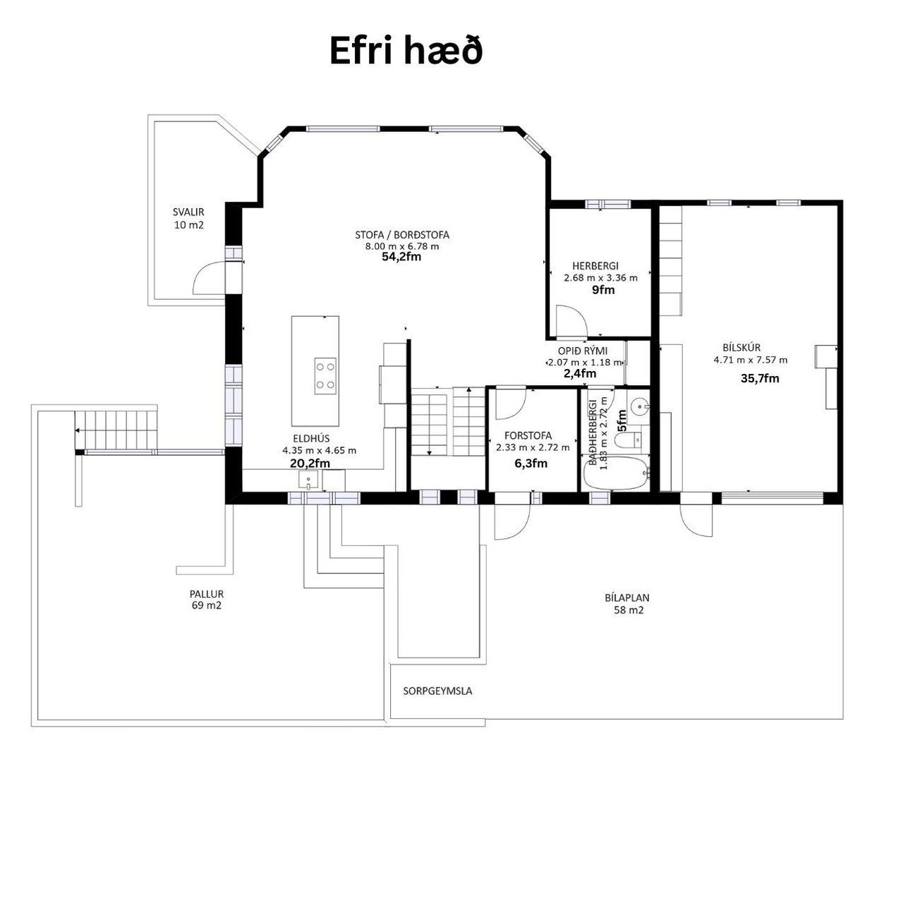 Jarðhæð: Möguleiki er á að útbúa íbúð á neðri hæð hússins.