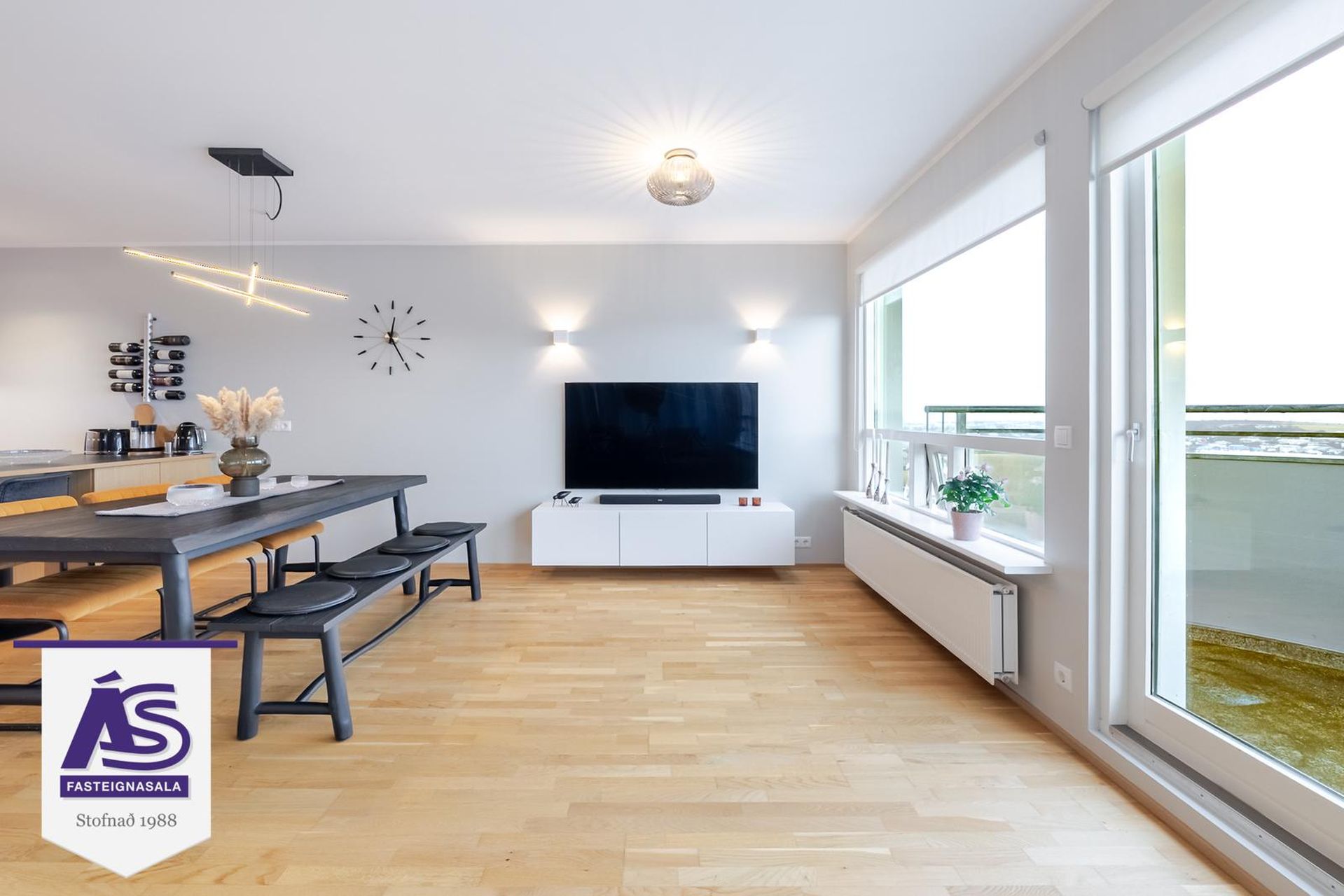 Falleg og vel með farin rúmgóð 3ja herbergja íbúð með sér inngang bæði í forstofuna og þvottahús á efstu hæð í litlu fjölbýli. Frábært útsýni er úr íbúðinni yfir höfðuborgarsvæðið og víðar. Eignin er alls 101,8 fm að stærð sem skiptist þannig að íbúðin er 93,2 fm og sér geymsla á jarðhæð 8,6 fm. Tvennar svalir, 6 fm í norðurátt og 19 fm yfirbyggðar svalir í suðurátt.
