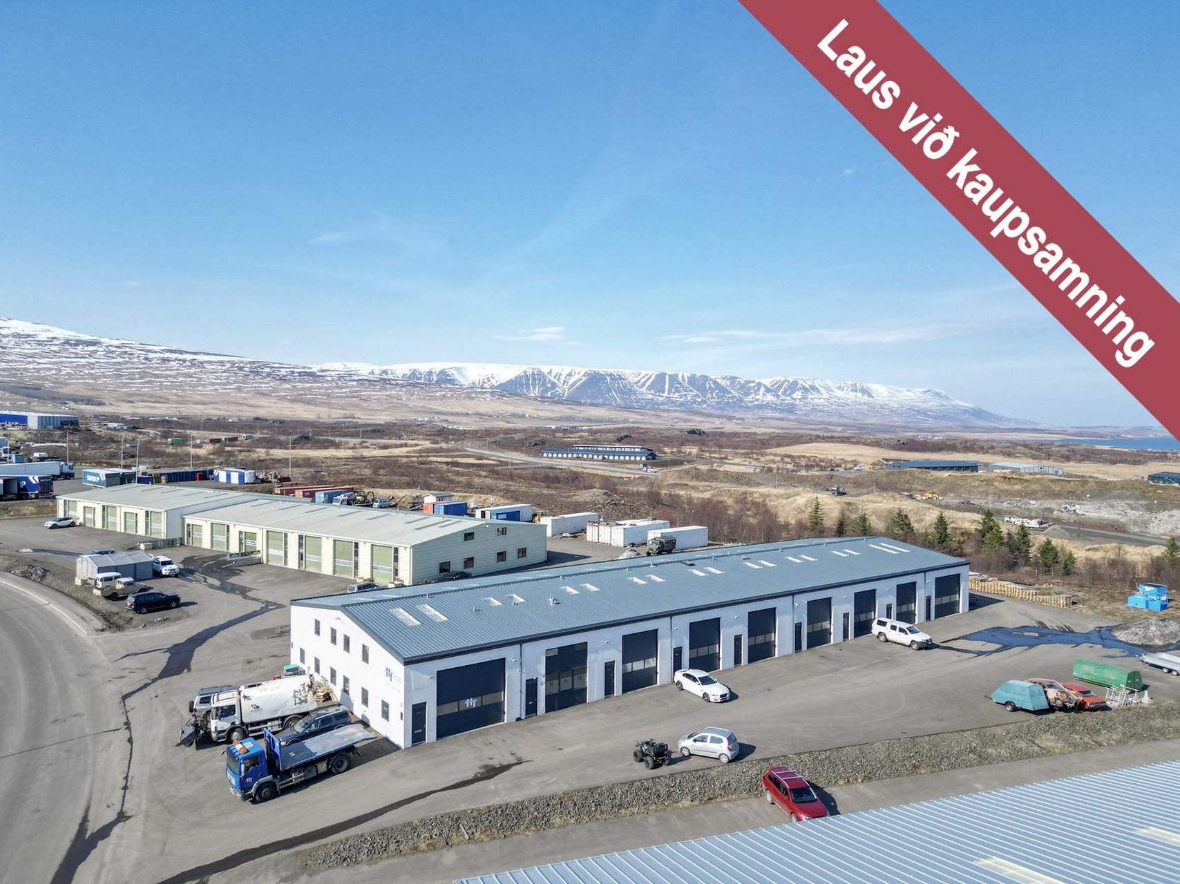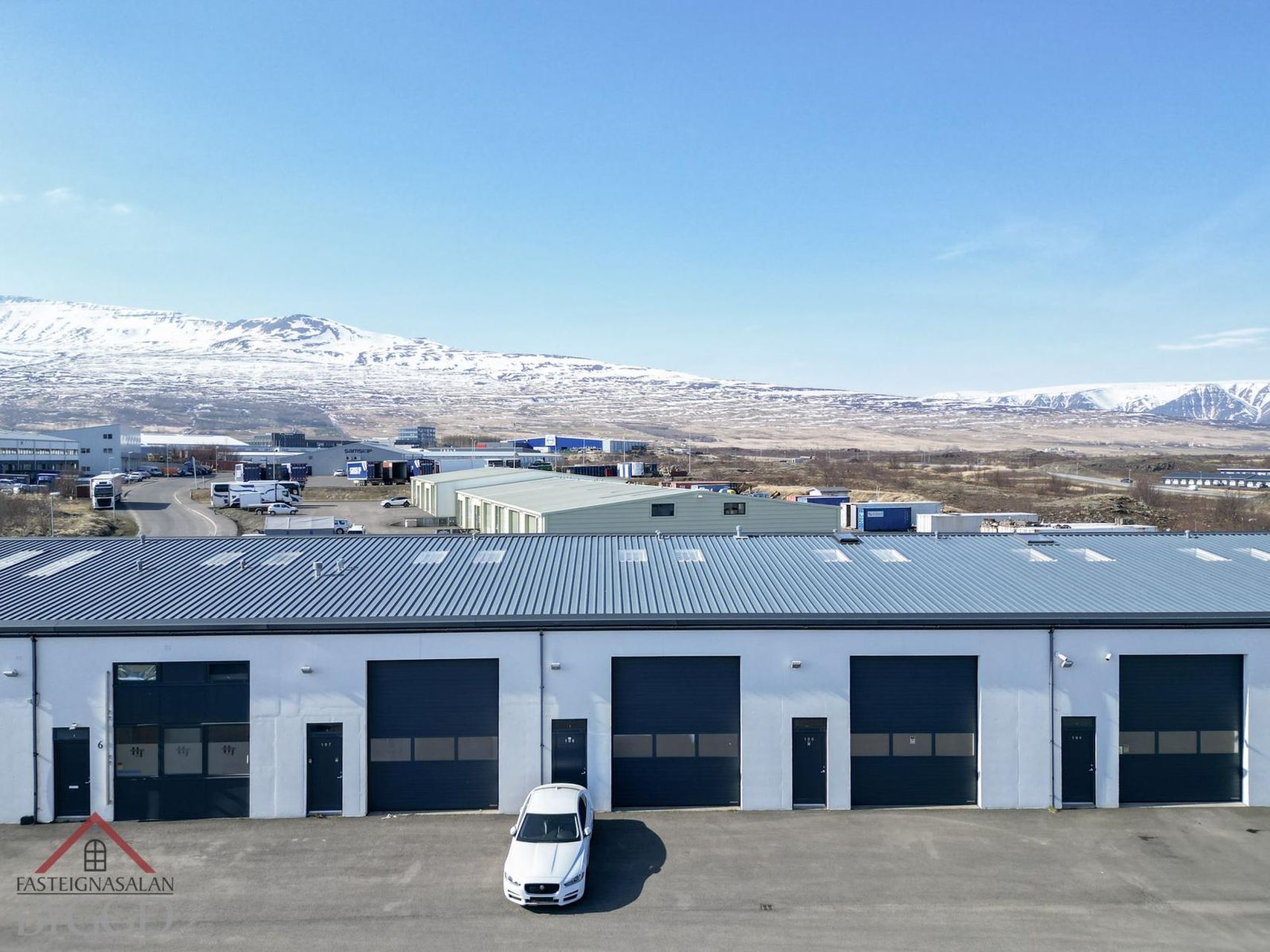Inngönguhurð er við hlið innkeyrsluhurðar sem er rafdrifin. Innkeyrsluhurðin er 3,6 metrar á breidd og 4,2 metrar á hæð.