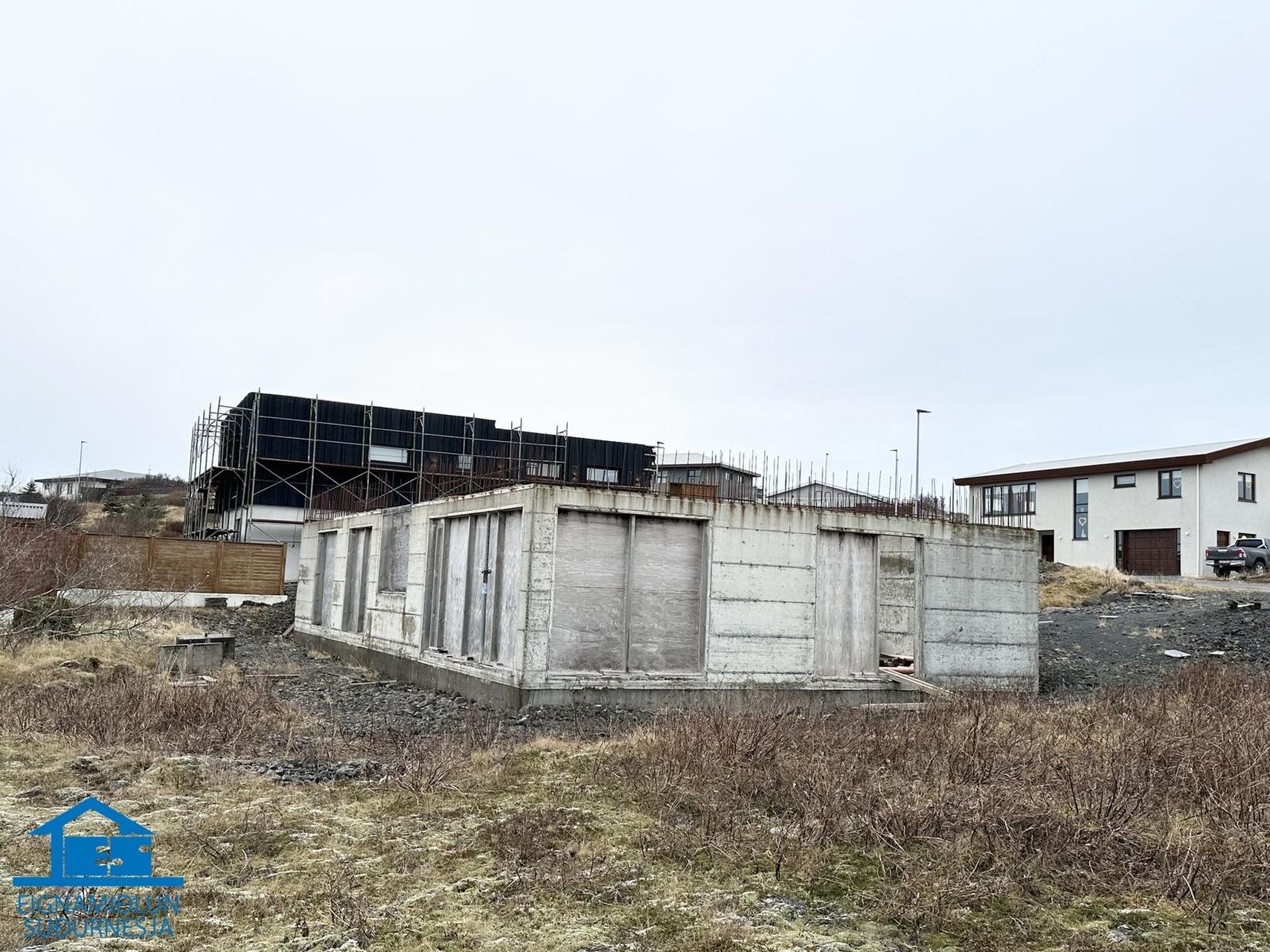 Húsið er í byggingu og er neðri hæðin tæplega fokheld. Allar teikningar nema raflagnateikningar fylgja. Húsið selst eins og það er.