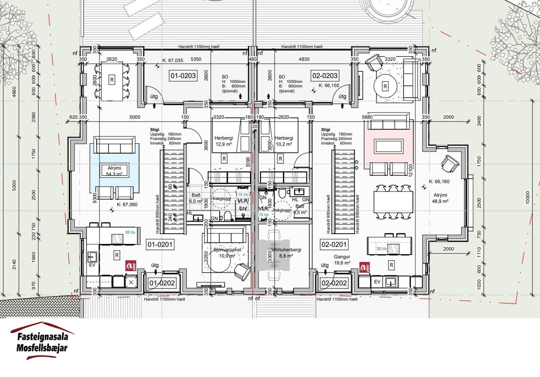 Einnig er hægt að kaupa húsin samkvæmt skilalýsingu seljanda tilbúnar til innréttinga á byggingarstigi B3. Afhending innan 12 mánaða frá kaupsamningi.