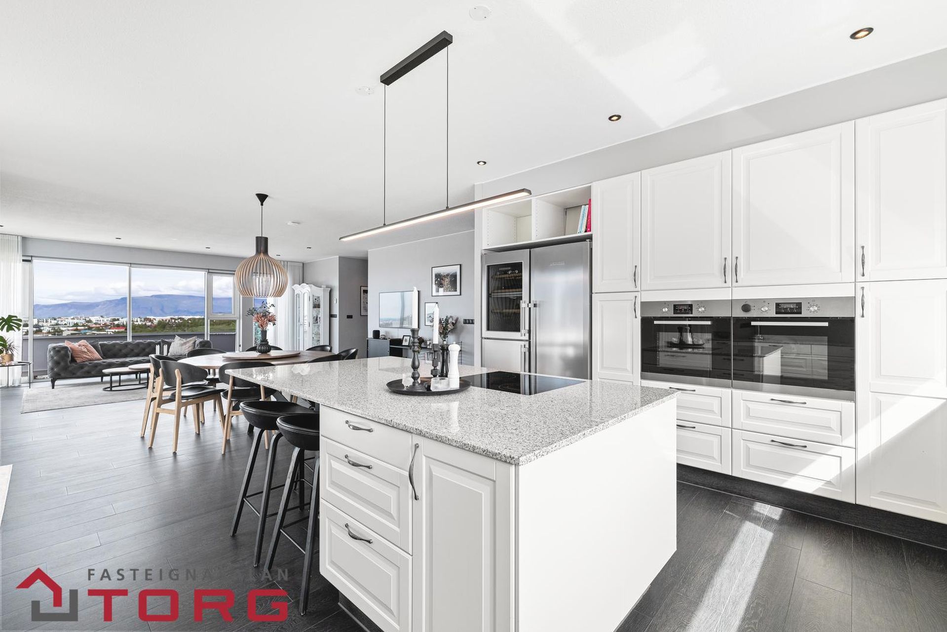Fasteignasalan TORG kynnir: Virkilega glæsilegt einbýlishús með fallegu útsýni og auka íbúð við Aflakór 18, 203 Kópavogi. Húsið er skráð 340,6 fm en til viðbótar er óskráð rými um 55 fm sem nýtist sem sjónvarpsherbergi og heima rækt / tómstundarherbergi, samtals um 395,6 fm. Á lóðinni er fallegt útisvæði með heitum potti, verönd, útigeymslum og opnu grænu svæði. Allar nánari upplýsingar veitir Darri Örn Hilmarsson, löggiltur fasteignasali í síma: 767-0000 eða darri@fstorg.is