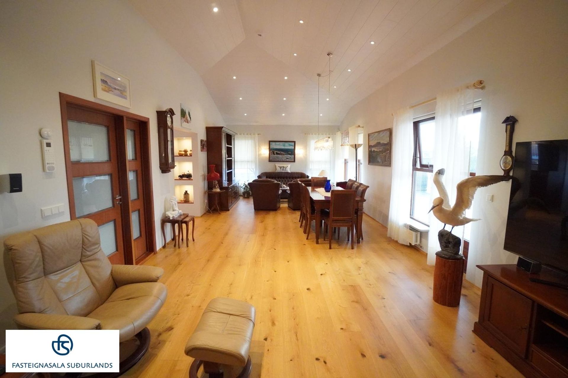 Fasteignasala Suðurlands (s 483 3424) kynnir í einkasölu: Finnsbúð 9, Þorlákshöfn. Stórglæsilegt, afar vel staðsett og einstaklega vandað 162,4m2 einbýlishús ásamt 47,6m2 tvöföldum bílskúr. Garðurinn er verðlaunagarður með stórri verönd með heitum potti og gróðurhúsi. 3 stór herbergi eru í húsinu og innaf hjónasvítu er glæsilegt fataherbergi.