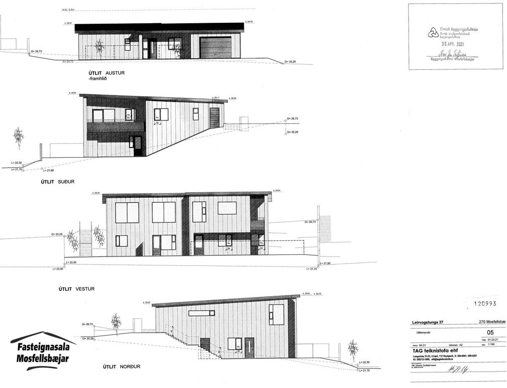 Fasteignasala Mosfellsbæjar S: 586-8080 kynnir: Byggingaréttur fyrir einbýlishús á 756,0 m2 lóð með púða undir einbýlishús á tveimur hæðum við Leirvogstungu 37 í Mosfellsbæ. Búið er að teikna 365,5 m2 einbýlishús með aukaíbúð og bílskúr. Samkvæmt teikningum þá er eignin einbýli 250,8 m2, bílskúr 45,7 m2 og auka íbúð 60,0 m2. Kominn er púði á lóðina sem nýlega var þjöppumældur.