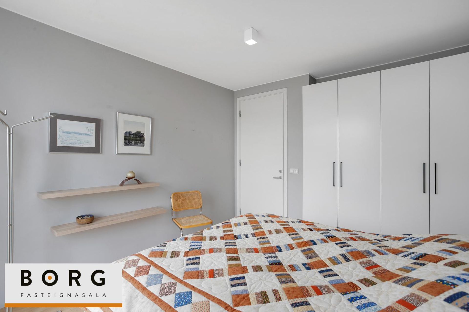 Svefnherbergi I: Hjónaherbergi er með góðu skápaplássi. Franskar svalir er í herberginu og parket á gólfi.
