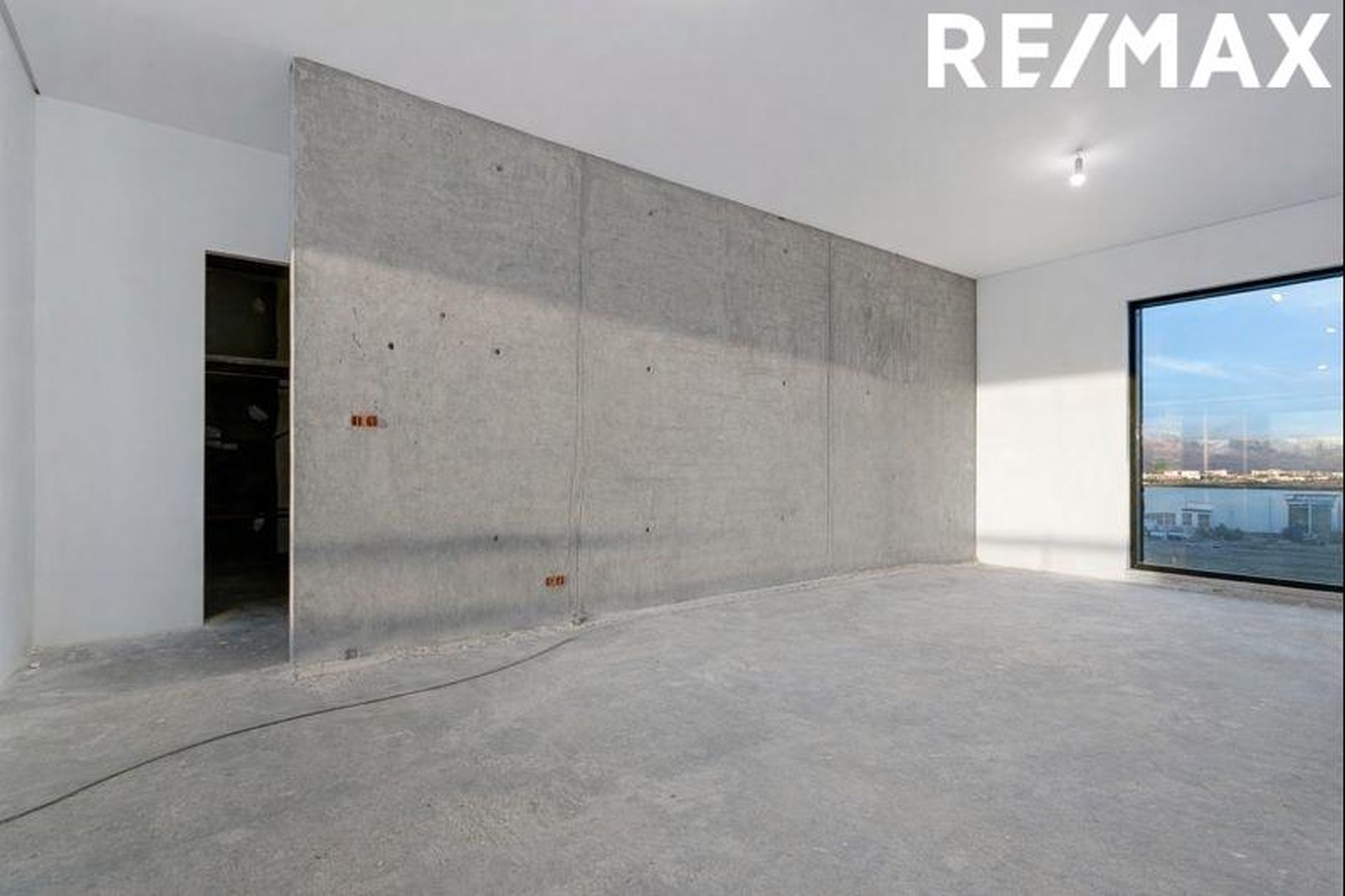 Svalir út frá eldhúsi komnar í rétta hæð undir endanlegt slitlag og á eftir að flota, gólfhiti kominn.