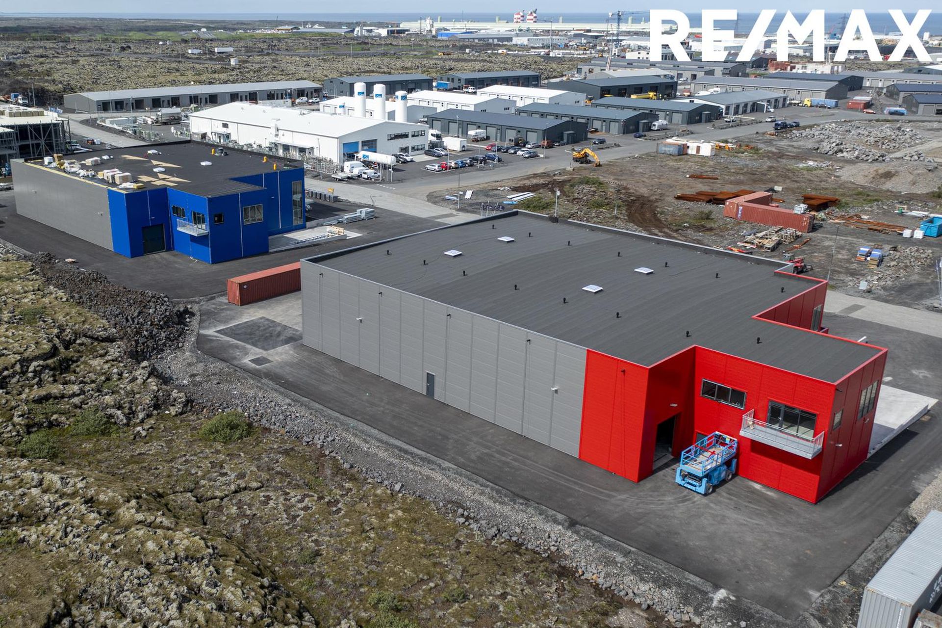5 innkeyrsludyr eru í húsið og rampur fyrir gáma.